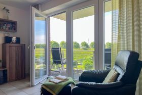 Mit einer Größe von 69 m² bietet dieses Apartment Platz für bis zu vier Personen, ideal für Familien oder Paare, die eine erholsame Zeit am Meer verbringen möchten. Das Apartment verfügt über zwei gemütliche Schlafzimmer, ein modernes Badezimmer mit einer bodengleichen Dusche sowie ein zusätzliches Gäste-WC. Der offene Wohnbereich, ausgestattet mit einer hochwertigen Küchenzeile, lädt zum gemeinsamen Kochen und Verweilen ein. Hier finden Sie alles, was Sie benötigen: einen Herd mit Cerankochfeld, einen Backofen, eine Mikrowelle sowie eine Spülmaschine. Für Ihren Kaffee am Morgen steht Ihnen eine moderne Kaffeemaschine zur Verfügung.