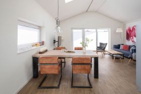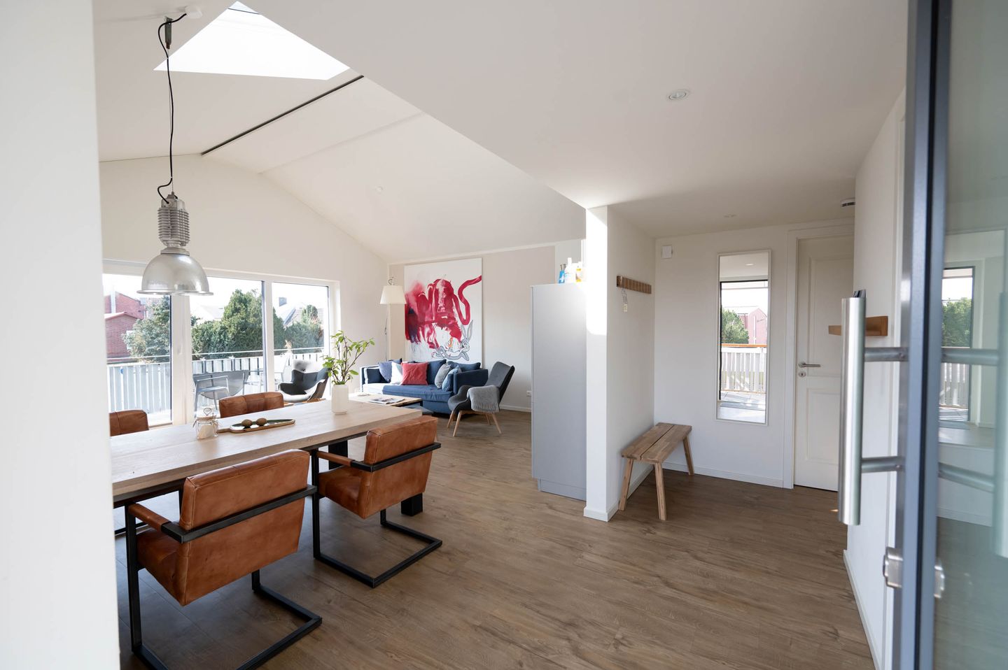 Der Neubau bietet ein gemütliches, naturverbundenes Ambiente durch die Kombination aus norddeutschem Charme und hochwertigem, nachhaltigem