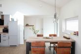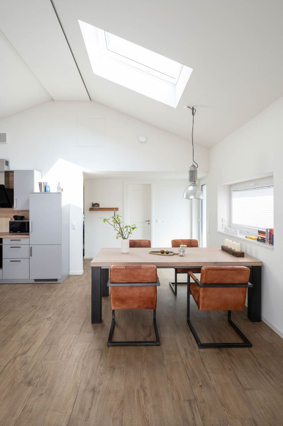 Die zum Wohnraum hin offene Küche lässt wenig Wünsche offen. Von der Zubereitung des Frühstücks samt Kaffee und Tee bis hin zum opulenten Mittag- oder Abendessen, jeder Genießer und Hobbykoch kommt hier ganz und gar auf seine Kosten. Der Esstisch ermöglicht ein gemütliches Zusammensitzen, auch nach dem Essen.