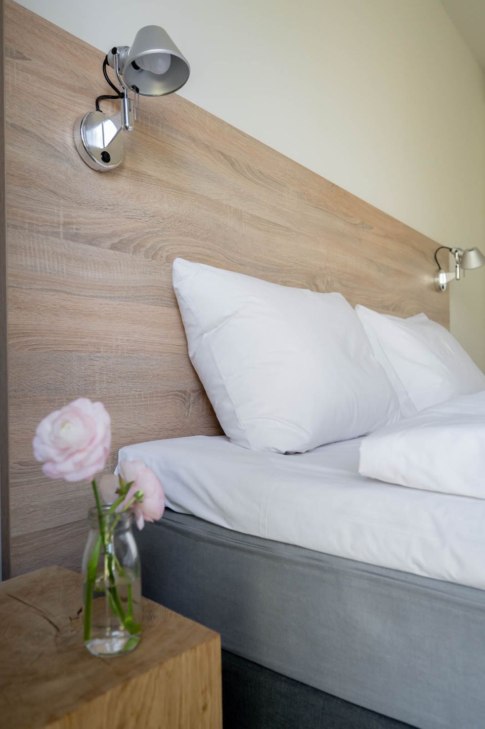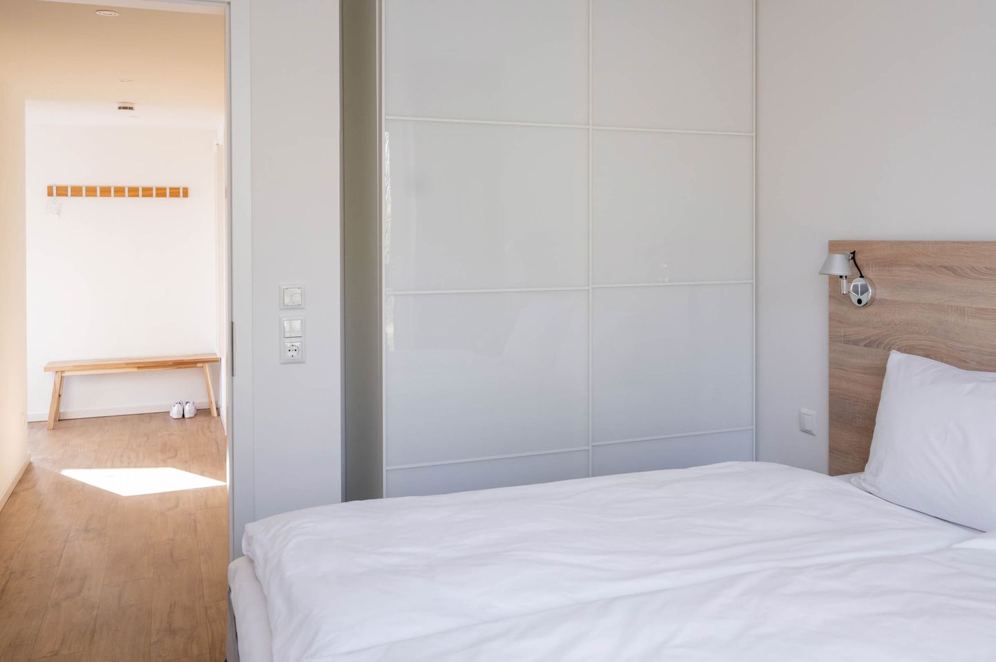 Wir sind der Überzeugung, dass ein guter Schlaf der wichtigste Faktor für einen erholsamen Urlaub und einen ausgeglichenen Start in den Tag darstellt. Deswegen haben wir viel Wert auf die Auswahl der Betten gelegt und uns für Coco-Mat-Betten aus Griechenland entschieden. Die hinterleuchtete Bettrückwand sorgt für eine gemütliche Atmosphäre und lädt dazu ein, den Tag an der Küste in Ruhe ausklingen zu lassen. Genießen Sie nach dem Aufwachen am Morgen den Blick ins Grüne oder starten Sie mit einem Kaffee/Tee und einer Folge ihrer Lieblingsserie auf einem der schlafzimmereigenen Fernseher. Ein doppelter Kleiderschrank in jedem Schlafzimmer hält genügend Platz bereit, um alles Wichtige zu verstauen und aufzuhängen.
