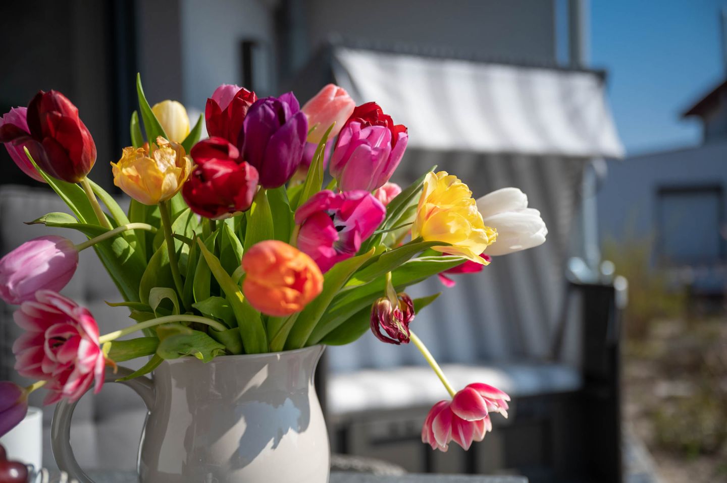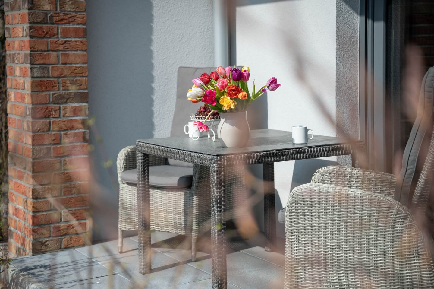 Der Neubau bietet ein gemütliches, naturverbundenes Ambiente durch die Kombination aus norddeutschem Charme und hochwertigem, nachhaltigem Design. Der Blick ins Grüne aus den beiden Schlafzimmern und die Möglichkeit, die Sonne auf dem eigenen Balkon zu genießen, steigert den Wohlfühlfaktor. Doch selbst wenn das gute Wetter mal ausbleibt, ist das kuschelige Sofa der perfekte Rückzugsort.