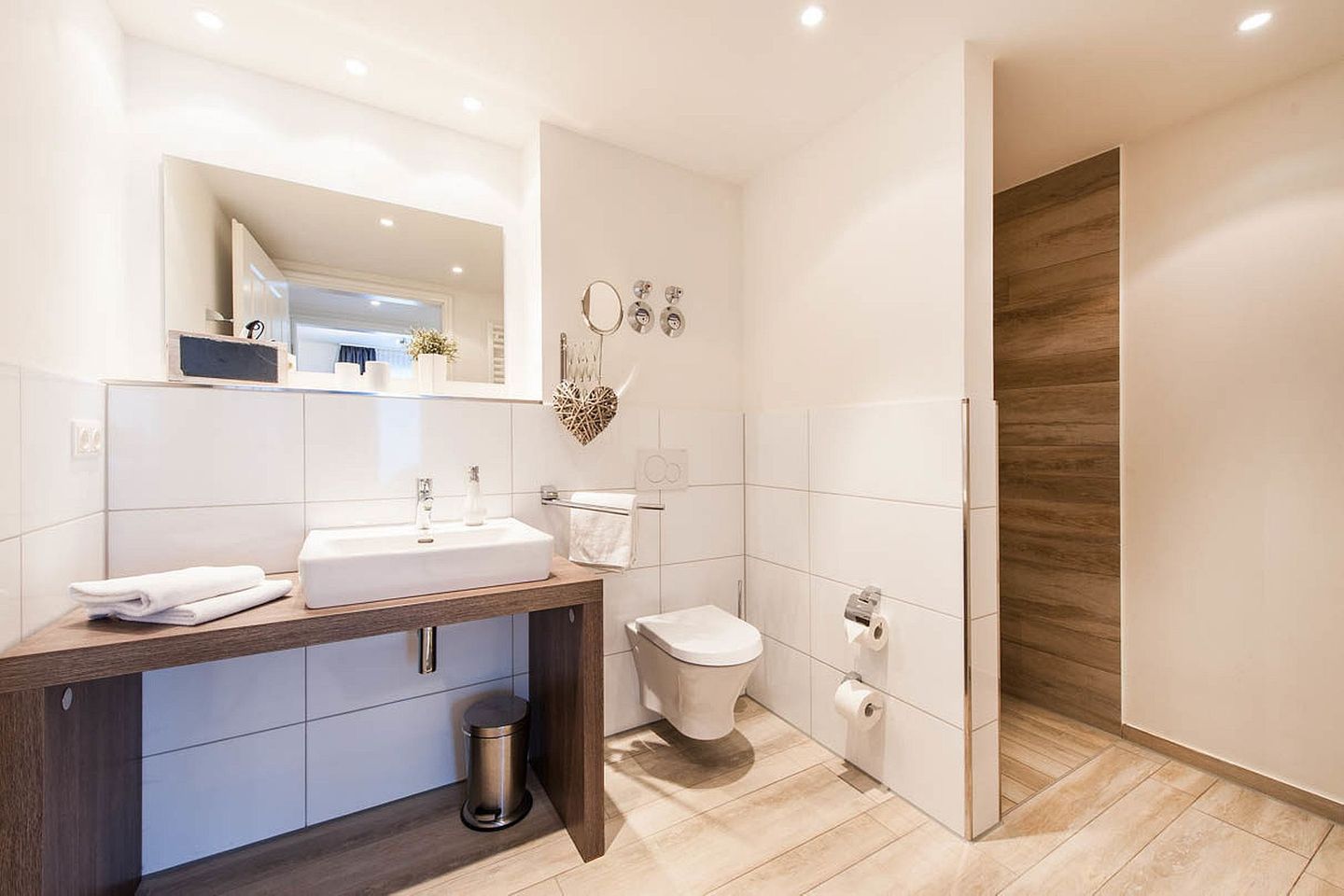 1. Bad / Walk-In-Regendusche, Handtuchwärmer, Föhn, Kosmetikspiegel