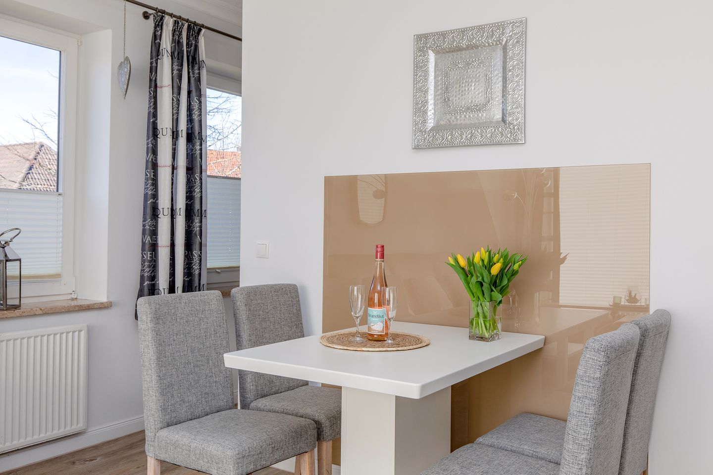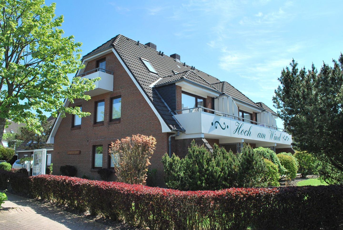 Das Haus Hoch am Wind bietet modernes Wohnen zu moderaten Preisen. Es liegt ruhig in einer Sackgassenlage und in der Nähe der traumhaften Familienlagune. WLAN im gesamten Haus kostenlos vorhanden, Raucher bitten wir für das allgemeine Wohlbefinden auf den Balkon bzw. Terrasse zu gehen. In den Wohnungen im Erdgeschoss ist auf Anfrage ein Haustier erlaubt, alle Wohnungen inkl. PKW-Stellplatz, eine Waschmaschine und ein Trockner (gegen Gebühr) sind in einem separaten Waschraum vorhanden. Teilweise ist eine Aufbettung gegen Gebühr möglich.