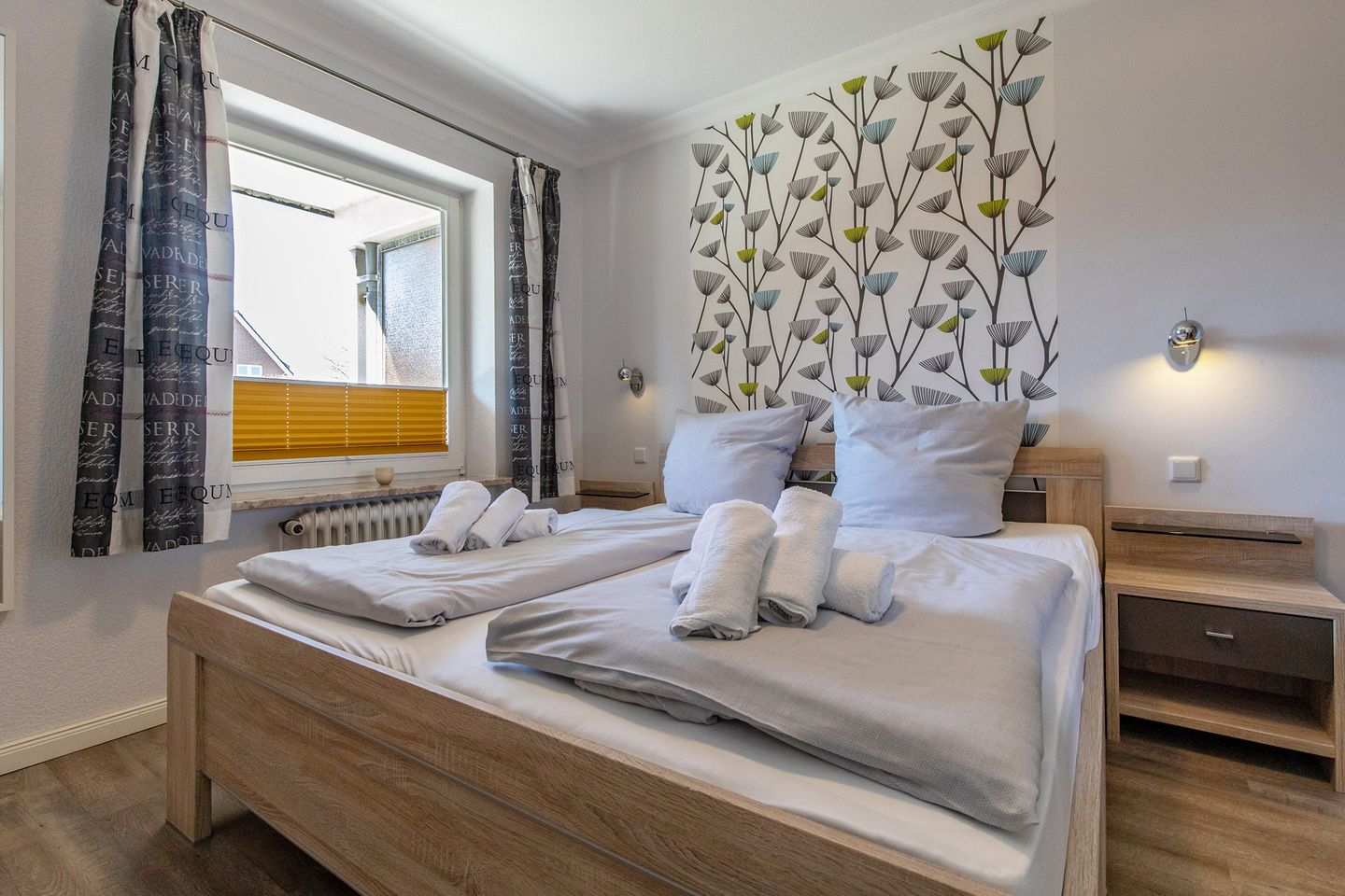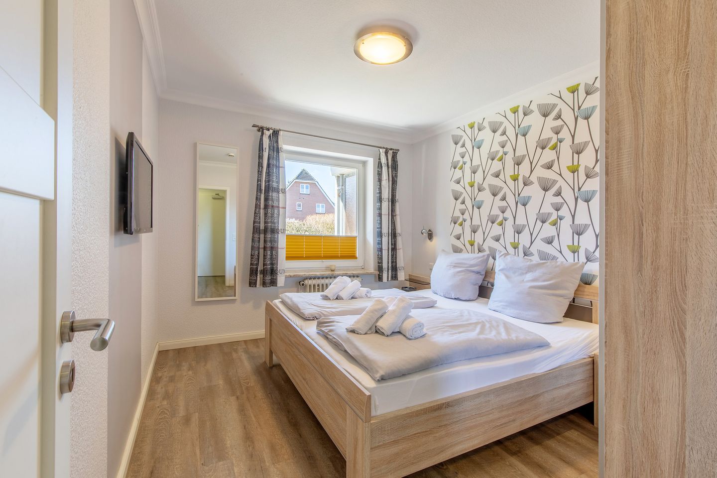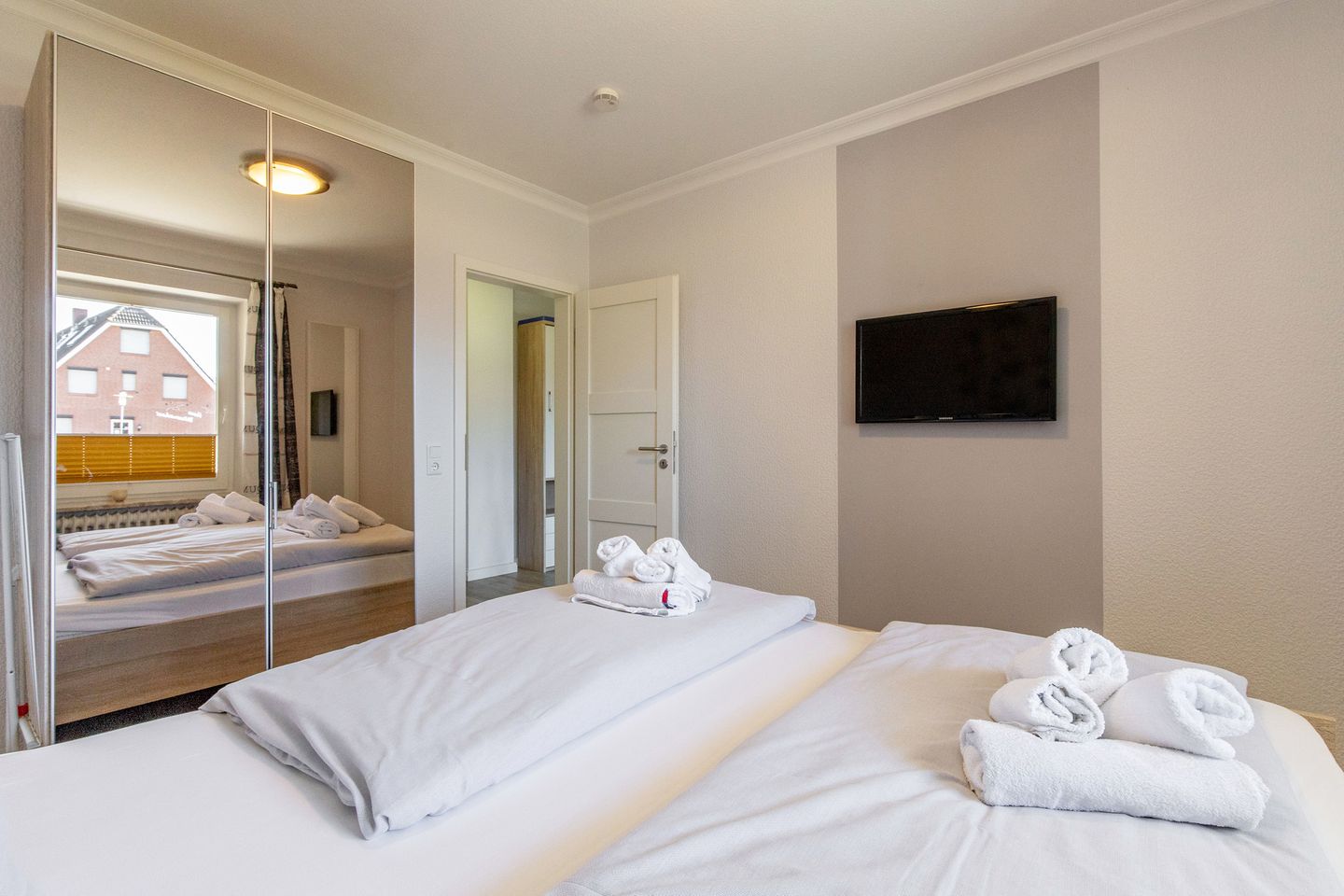 Das Haus Hoch am Wind bietet modernes Wohnen zu moderaten Preisen. Es liegt ruhig in einer Sackgassenlage und in der Nähe der traumhaften Familienlagune. WLAN im gesamten Haus kostenlos vorhanden, Raucher bitten wir für das allgemeine Wohlbefinden auf den Balkon bzw. Terrasse zu gehen. In den Wohnungen im Erdgeschoss ist auf Anfrage ein Haustier erlaubt, alle Wohnungen inkl. PKW-Stellplatz, eine Waschmaschine und ein Trockner (gegen Gebühr) sind in einem separaten Waschraum vorhanden. Teilweise ist eine Aufbettung gegen Gebühr möglich.
