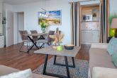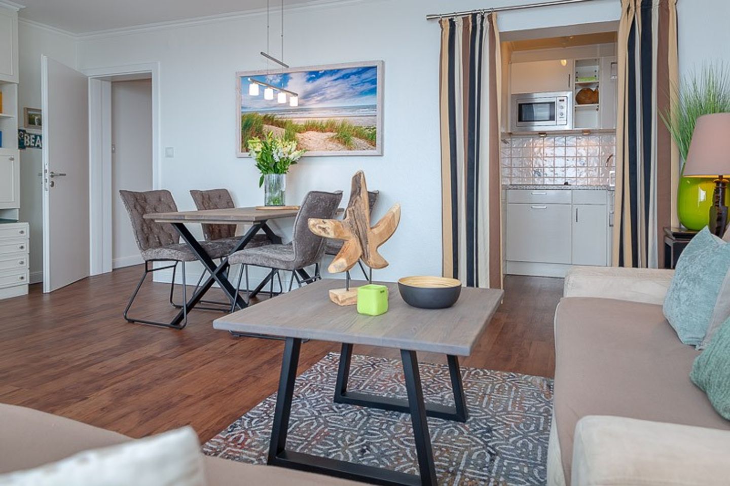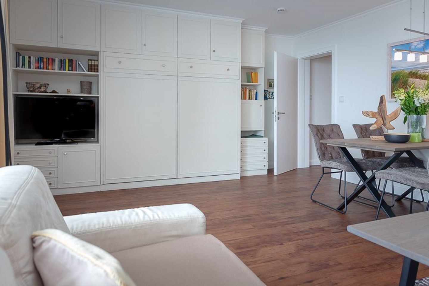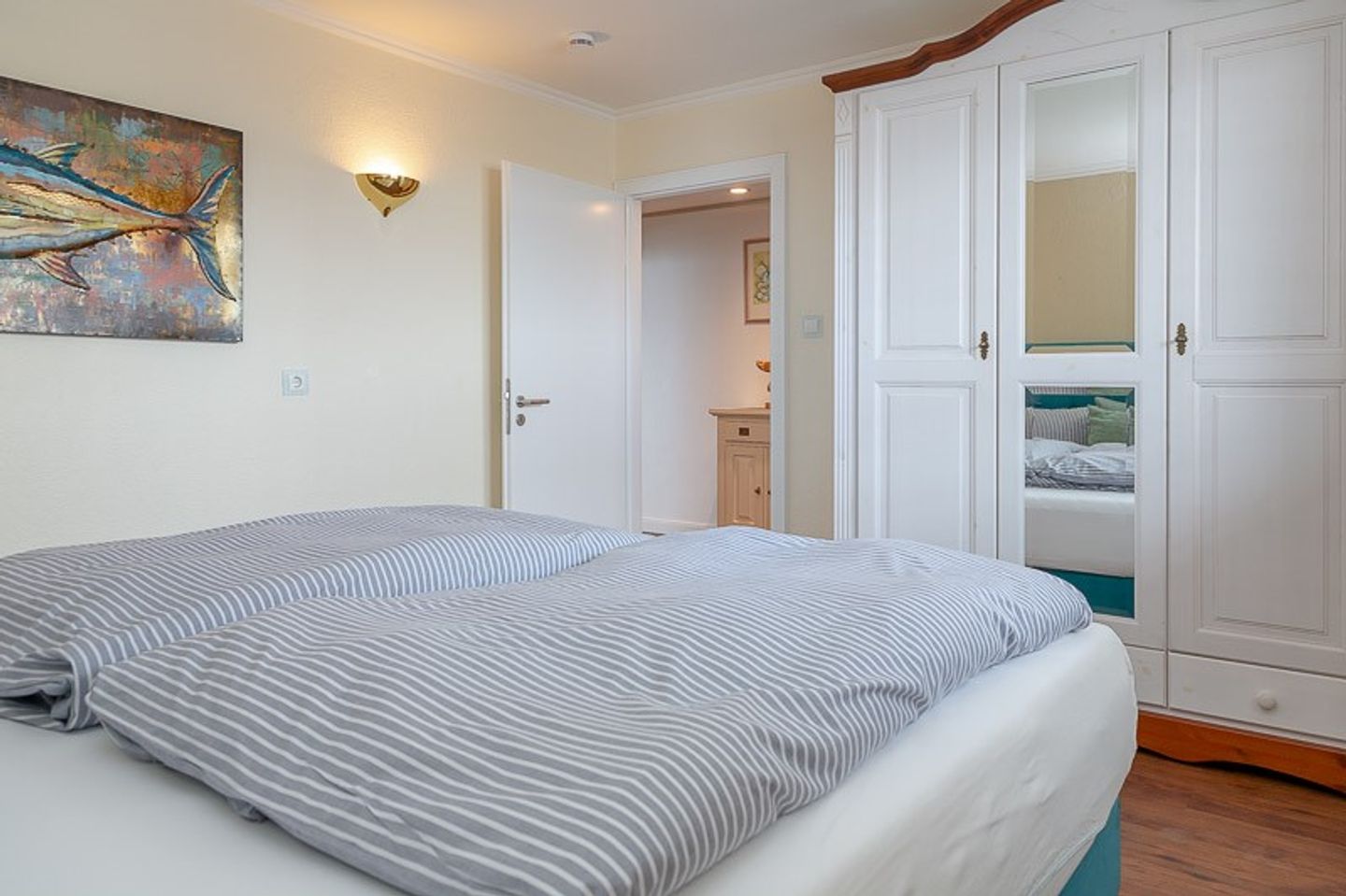 Das helle, großzügige 2-Zimmerappartement (ca. 60m²) befindet sich in der 5. Etage in einem Appartementhaus in direkter Lage zum Strand und dem Schwimmbad. Die gesamte Wohnung ist mit einem Designerbelag in Holzoptik ausgelegt. Im großzügigen Wohnbereich befindet sich ein Essplatz und eine große Sitzgruppe. 2 weitere Schrankbetten können zum Schlafen ausgeklappt werden (2 x 90x200). Im Schlafzimmer befindet sich ein neues, großes Boxspringbett, welches auch für größere Gäste geeignet ist (Liegefläche 1,80 x 2,10m). Aus dem Schlafzimmer hat man einen tollen Blick über die Stadt. Der Balkon zeigt nach Westen und hat einen fantastischen Meerblick (bis Wenningstedt und den unglaublichen Sonnenuntergängen im Sommer). Die kleine Küche ist komplett ausgestattet. Schickes neues Badezimmer. Kostenpflichtige PKW-Stellplätze befinden sich vor dem Haus. Gleich um die Ecke gibt es einen Bäcker und einen Fahrradverleih. Platz für 2-4 Personen. Die Wohnung ist stufenlos erreichbar.