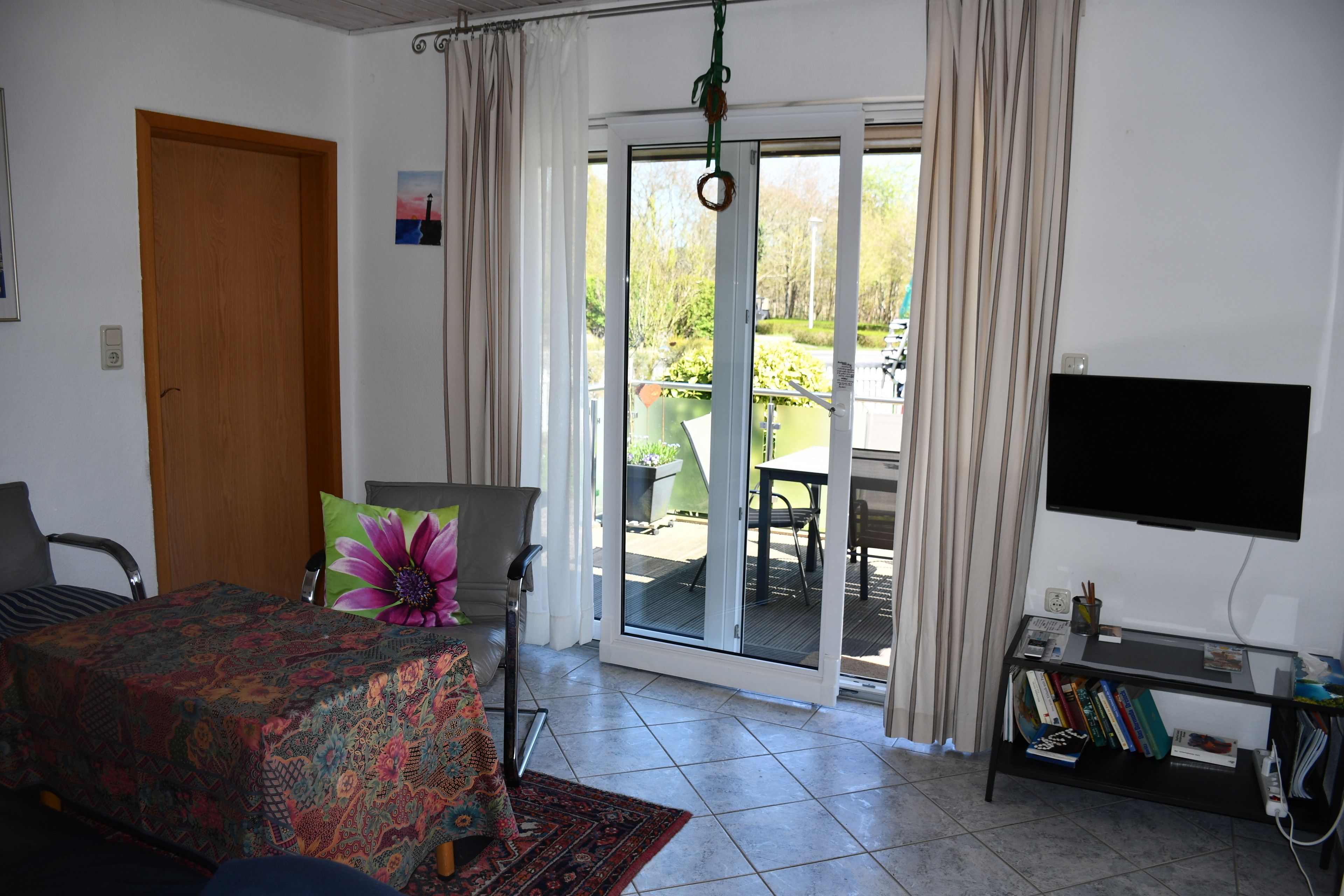 Die Ferienwohnung liegt nur 200 Meter vom Strand entfernt, der Deich- und Strandzugang ist mit einer Rampe ausgestattet und somit auch mit dem Rollator oder Kinderwagen gut zu meistern.