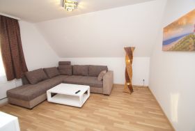 Die Ferienwohnung Leuchtturm befindet sich in ruhiger Sackgassenlage, im 1. Stock. Sie bietet auf ca. 50qm Wohnfläche Platz für 4 Erwachsene + 1 Kleinstkind im Kinderreisebett.