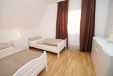 Sie verfügt über 2 separate Schlafzimmer, eines mit Doppelbett 180x200cm und großem Kleiderschrank und eines mit 2 Einzelbetten 90x200cm mit Kommode. Das Wohnzimmer ist mit einem Sofa, Stubentisch und Flachbildfernseher+DVD Player und CD- Radio ausgestattet. Die Küche ist mit Backofen, Ceranfeld, Kühlschrank mit kleinem Gefrierfach und Essbereich mit Bestuhlung ausgestattet. Das Badezimmer ist mit Dusche, WC, Waschbecken und Fön ausgestattet. Im Aussenbereich steht Ihnen eine überdachte Terrasse und Rasenfläche zur Gemeinschaftsnutzung mit der Ferienwohnung Moewe zur Verfügung. Hier kann auch gerne gegrillt werden, ein Grill ist vorhanden. Bettwäsche und Handtücher können beim Eigentümer angemietet werden.