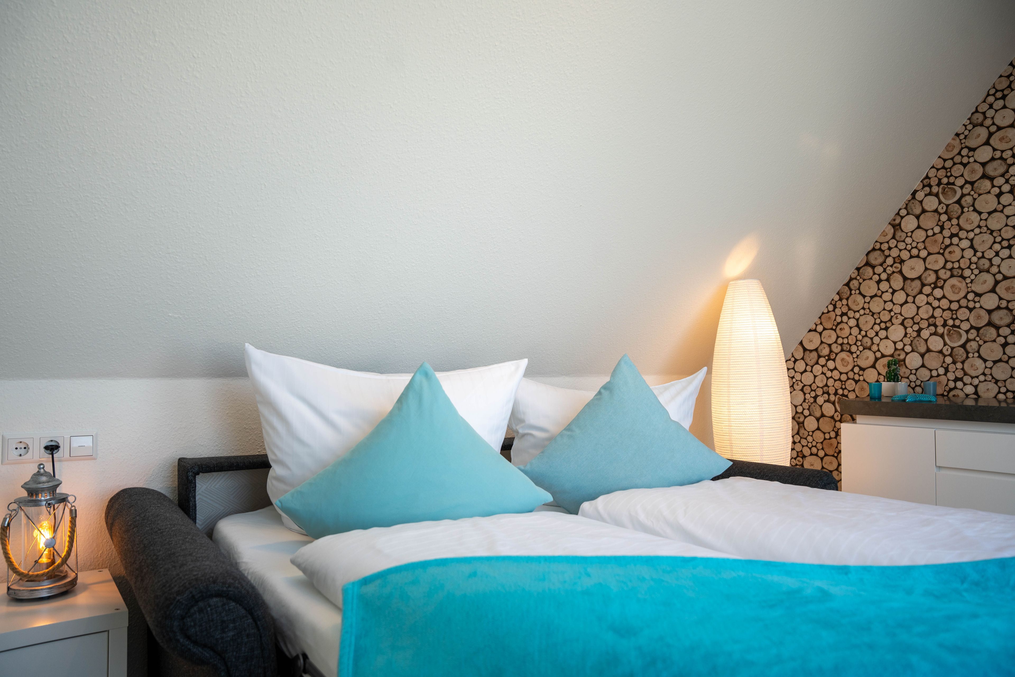 Geschirrtücher, Bettwäsche und Handtücher können angemietet werden. Unterstellmöglichkeiten für Fahrräder und Bollerwagen sind vorhanden. Eine zusätzliche Terrasse befindet sich auf dem Rasengrundstück. Als Freizeitangebot bieten wir Ihnen einen Kickertisch und eine Tischtennisplatte im Keller des Hauses zur freien Verfügung an. Waschmaschine, Trockner und Tiefkühler auf Anfrage.