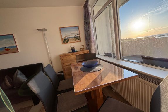 Die Wohnung bietet einen schönen Ausblick auf die Salzwiesen und den Leuchtturm bis hin zur Ostsee. Vom Balkon aus können Sie sowohl den Sonnenaufgang als auch den Sonnenuntergang genießen.