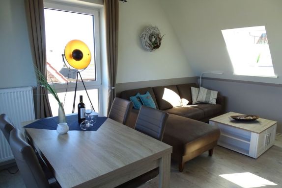 Herzlich Willkommen im Urlaub, die Neubauferienwohnung Strand Quartiere 13a -Koje 5 befindet sich im Obergeschoss und Dachgeschoss des Hauses und bietet Platz für 4 Erwachsene + 1 Kleinstkind, 1 Haustier auf Anfrage, eine Sauna und Loggia.