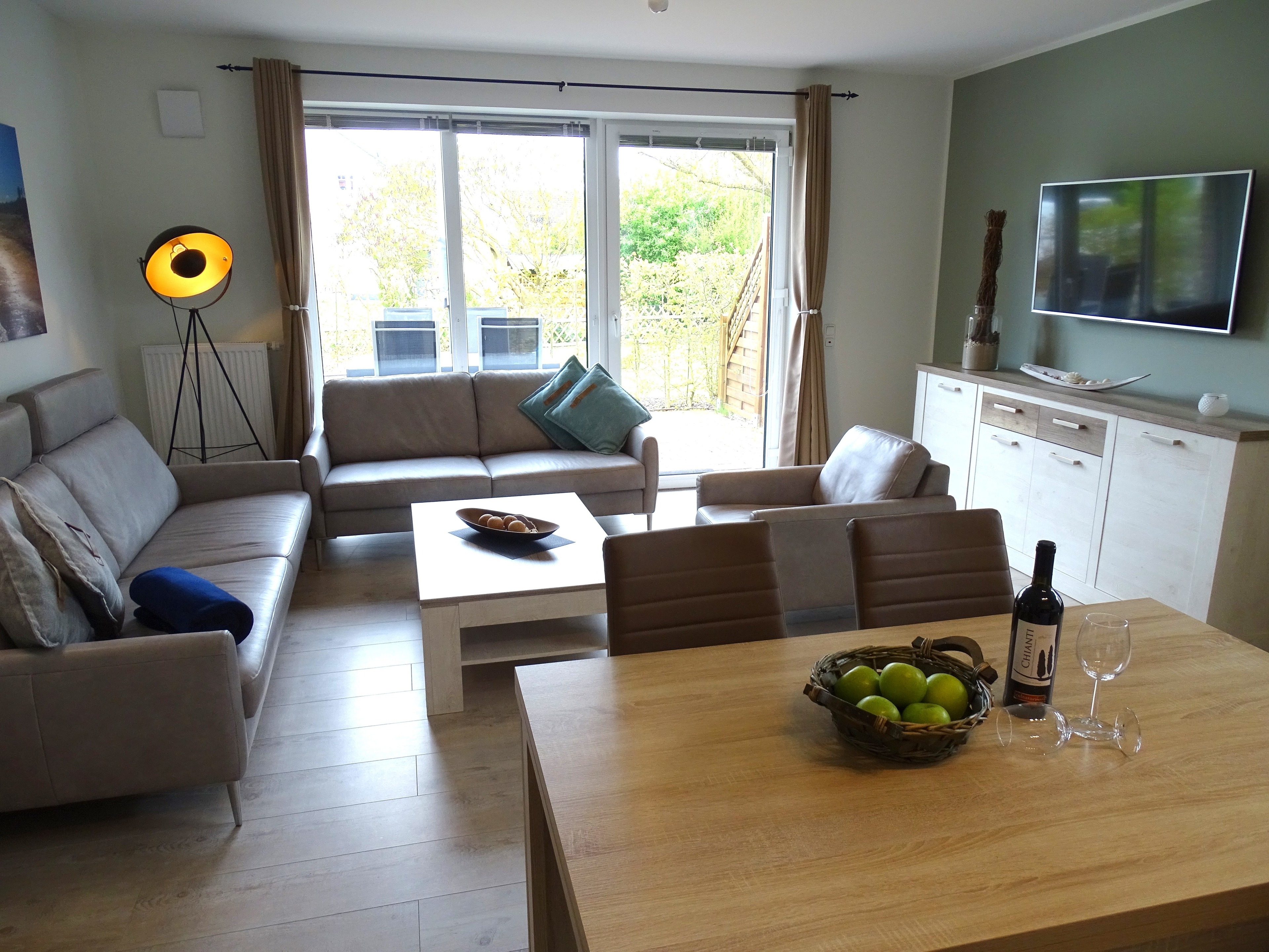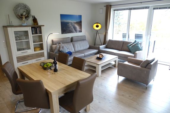 Herzlich Willkommen im Urlaub, die Neubauferienwohnung Strand Quartiere 13b -Koje 7 befindet sich im Erdgeschoss des Hauses und bietet Platz für 6 Personen + 1 Kleinkind im Kindereisebett und 2 Hunde auf Anfrage.