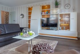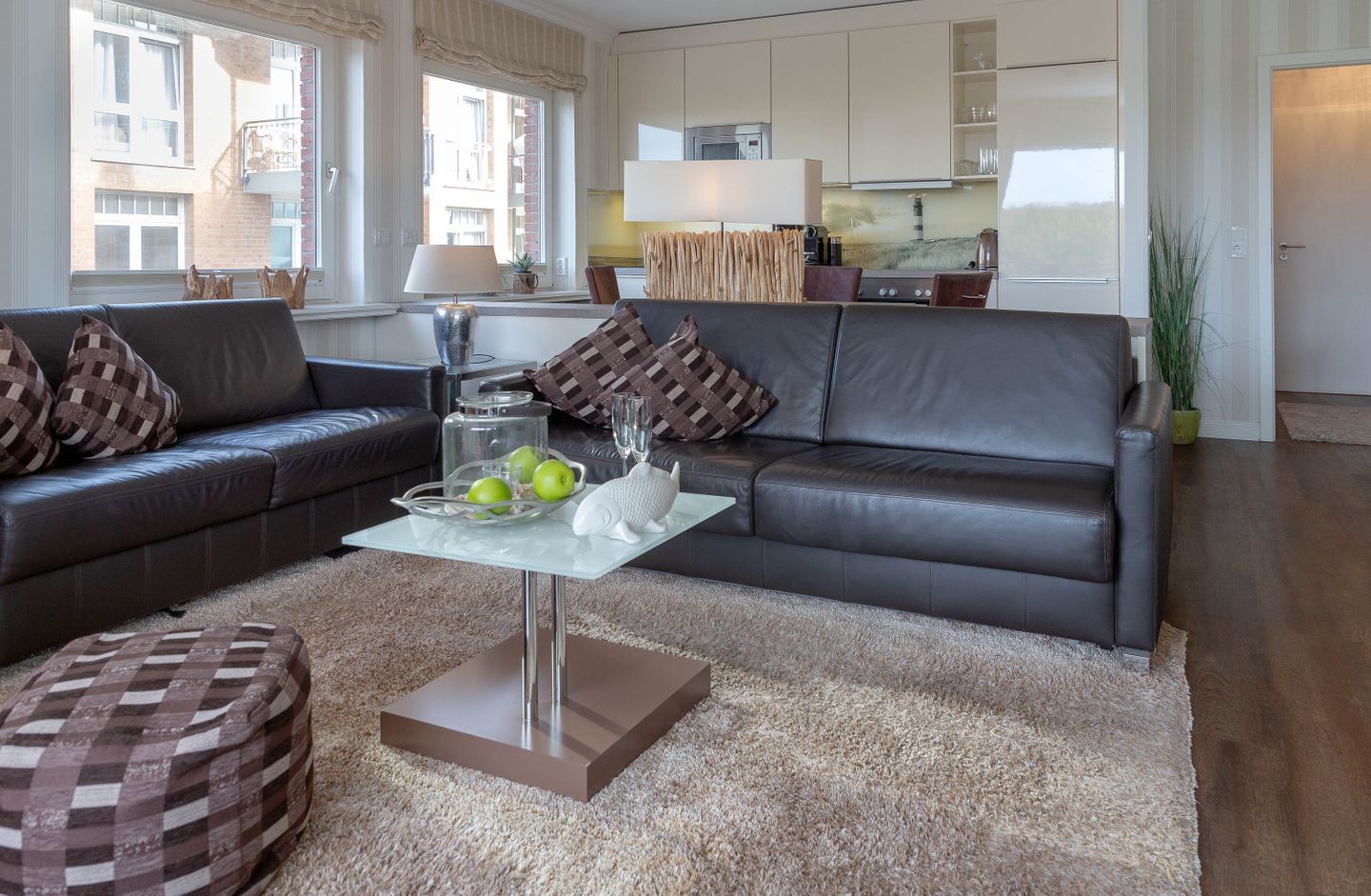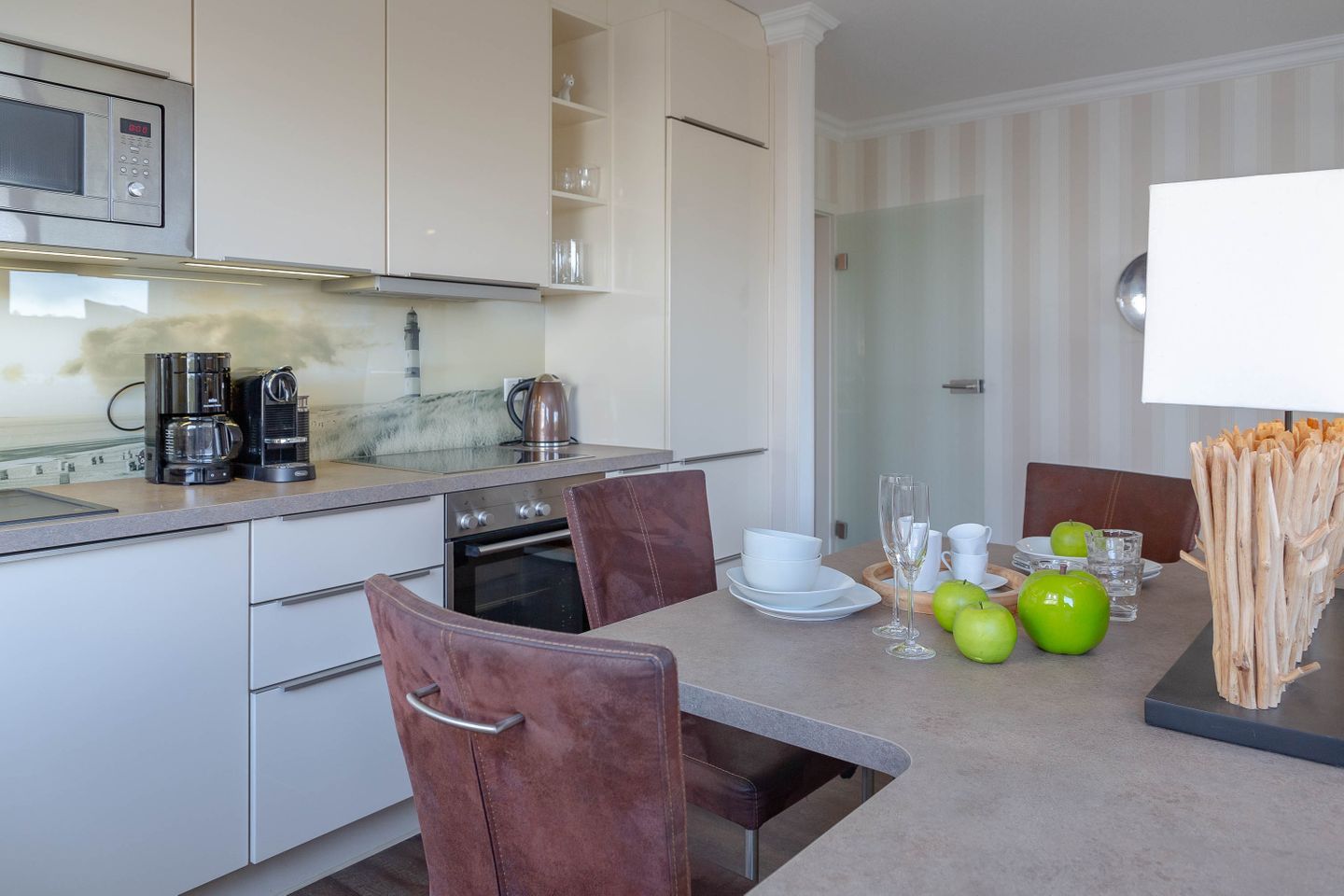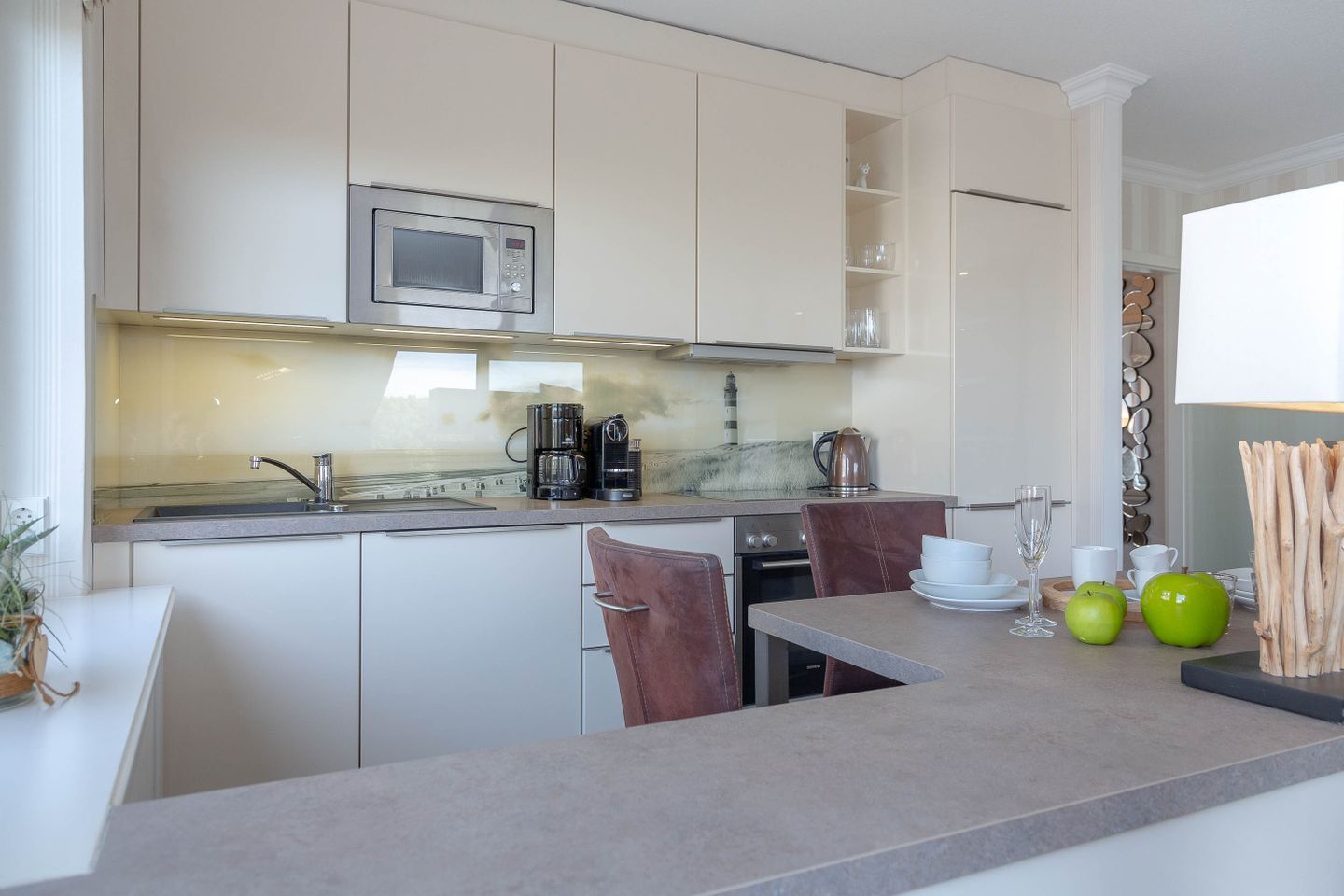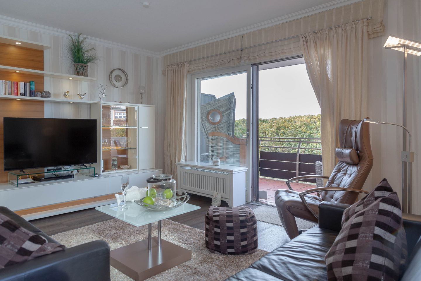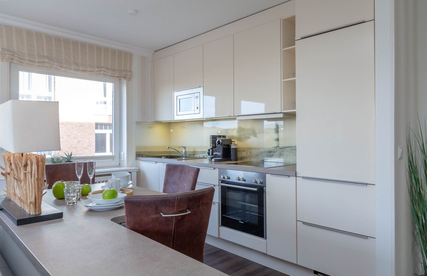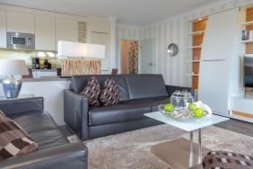 Direkt hinter dem Dünenkamm in kaum zu überbietender Wohnlage (50 Meter bis zum Strandübergang, 100 Meter bis zur Friedrichstraße), erwartet Sie auf rund 55 m² behagliche Gemütlichkeit gepaart mit allem erdenklichen Luxus. Die Wohnung befindet sich in der 1. Etage nur durch einen Fuß/Radweg und der Düne vom Strand entfernt. Statt Verkehrslärm erwartet Sie Meeresrauschen. Sie genießen den großzügigen Wohnbereich mit Schlafcouch (160 x 200), Relax-Sessel, großzügigem Flat Screen und offener, voll ausgestatteter Küche mit Essplatz. Großzügiger West-Balkon (2 x 4,3 m) mit Strandkorb und direktem Dünenblick. Daneben erwartet Sie ein separates Schlafzimmer mit Kabel-TV und elektr. verstellbarem Boxspringbett (180 x 200). Modernes Duschbad/WC mit Regendusche. Die Wohnung ist ausgestattet mit z.B. Geschirrspüler, Mikrowelle, Backofen, Ceranherd, Kabel-TV, Radio, Fön. Im Haus: Waschmaschine und Trockner zur entgeltlichen Benutzung. Die Wohnung verfügt über eine Duplexparkmöglichkeit in der TG für Kleinwagen (max. Höhe 1,5m; max. Länge 5m ;max. Gewicht 2t;). Die Benutzung erfolgt ausschließlich auf eigene Gefahr.