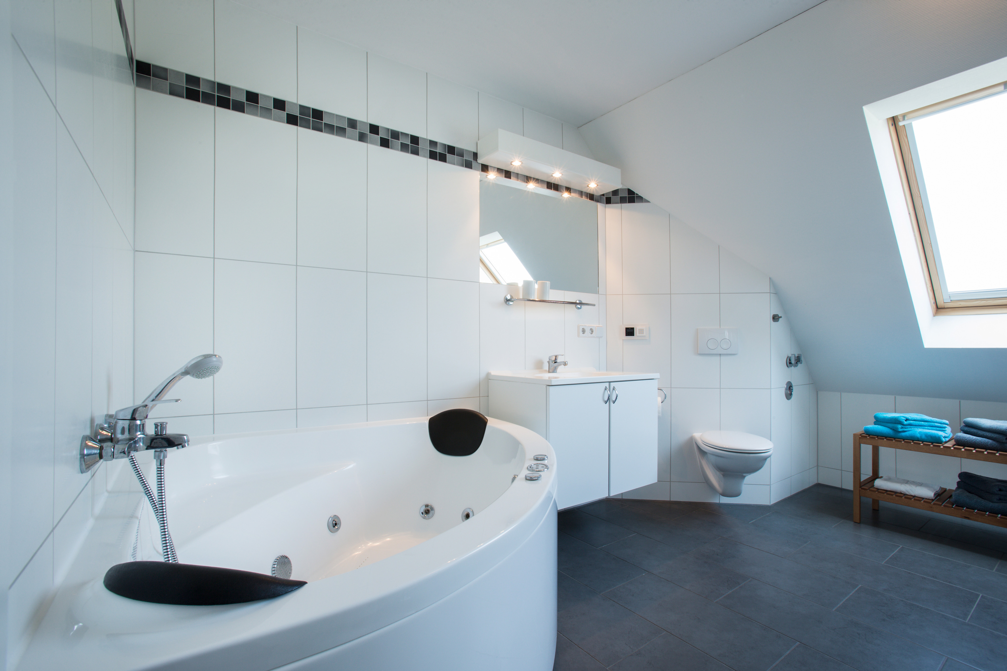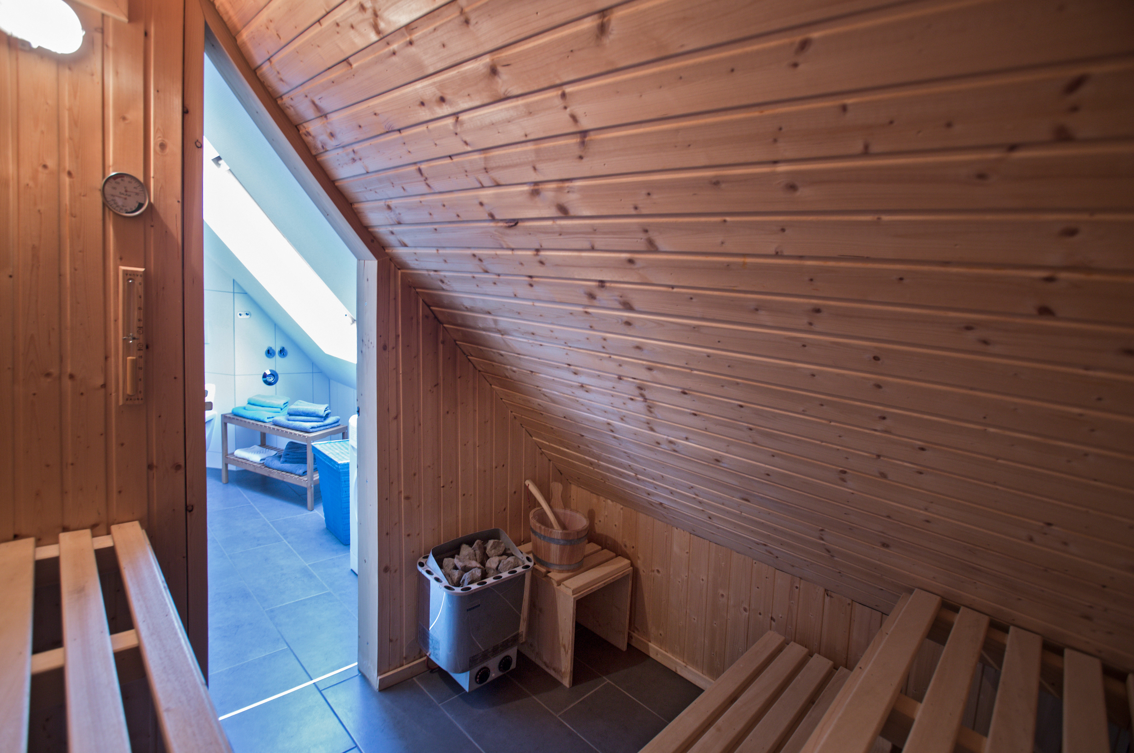 Fußbodenheizung im Bad und im Wohnbereich sowie ein knisternder Kamin sorgen an kälteren Tagen für gemütliche Wärme in Ihrem Urlaubs-Zuhause. Zusätzlich steht Ihnen in dem hochwertigen und geräumigen Badezimmer eine Sauna zur Verfügung.