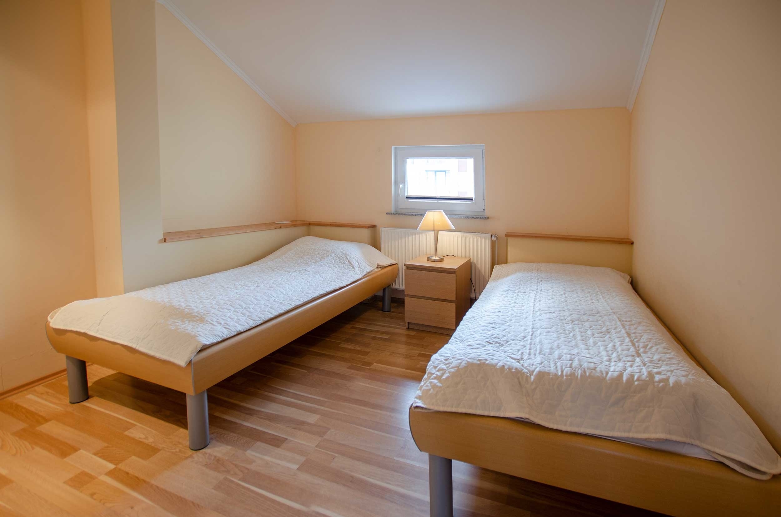 Zwei weitere Schlafzimmer mit je zwei einzelstehenden Betten mit Nachttischen und Kleiderschränken.