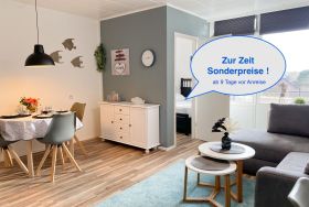 Nur 200 m zum Strand - hier wohnen Sie gleich hinterm Deich in der Marina. 1,5-Zimmer-Wohnung, gepflegt, gemütlich und sehr schick für 2 (+ 2) eingerichtet. WLAN, 1 PKW-Stellplatz, Fahrradraum für 2 Räder. Keine Haustiere.