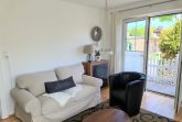 Vom Wohnzimmer gelangen Sie auf den möblierten Balkon.