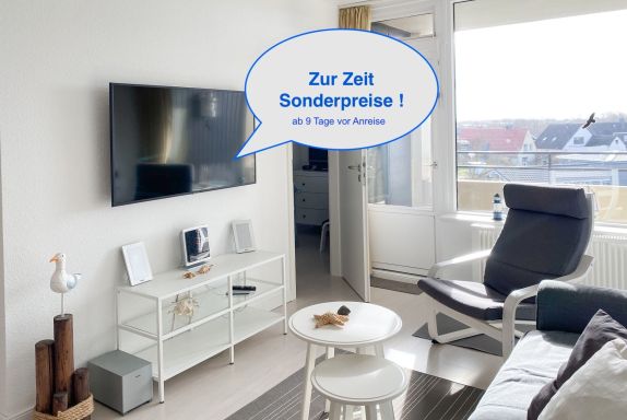 Diese gepflegte 1,5-Zimmer-Nichtraucher-Wohnung in einem ruhigen Apartmenthaus ist mit dem Aufzug oder über die Treppe zu erreichen und bietet nicht zuletzt mit dem Süd-West-Balkon alles, was Sie für Ihren Wohlfühl-Urlaub am Meer brauchen: Im Wohn-/Schlafzimmer steht ein Kuschelsofa, dass kinderleicht zu einem bequemen Doppelbett wird. Im Schlafzimmer finden Sie ein Doppelbett für kuschelige Nächte und den zweiten Fernseher. Die Wohnung verfügt über Kabel-(Smart-)TV inkl. Netflix und Prime mit Ihrem privaten Zugang, Radio/CD, diverse Bücher und Spiele, einen gemütlichen Essplatz und ein modernes Duschbad mit extra großer Duschkabine (70x120). Die separate Einbauküche ist ausgestattet mit reichlich Geschirr, Ceranfeld, Mikrowelle, Geschirrspüler, Kühlschrank/Gefrierfach, Kaffeemaschine, Wasserkocher und Toaster. Im Flur ist ein großer Einbauschrank mit viel Platz für Ihre persönlichen Dinge. Der seitliche Meerblick von Ihrem Balkon lässt auch durch den regen Schiffsverkehr keine Langeweile aufkommen.