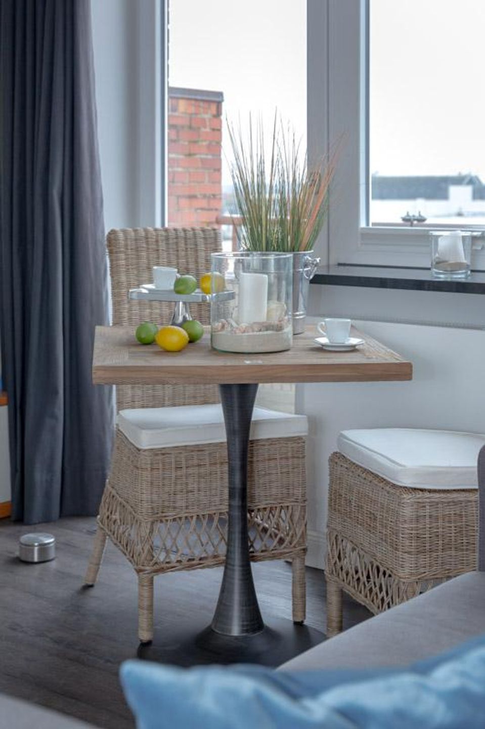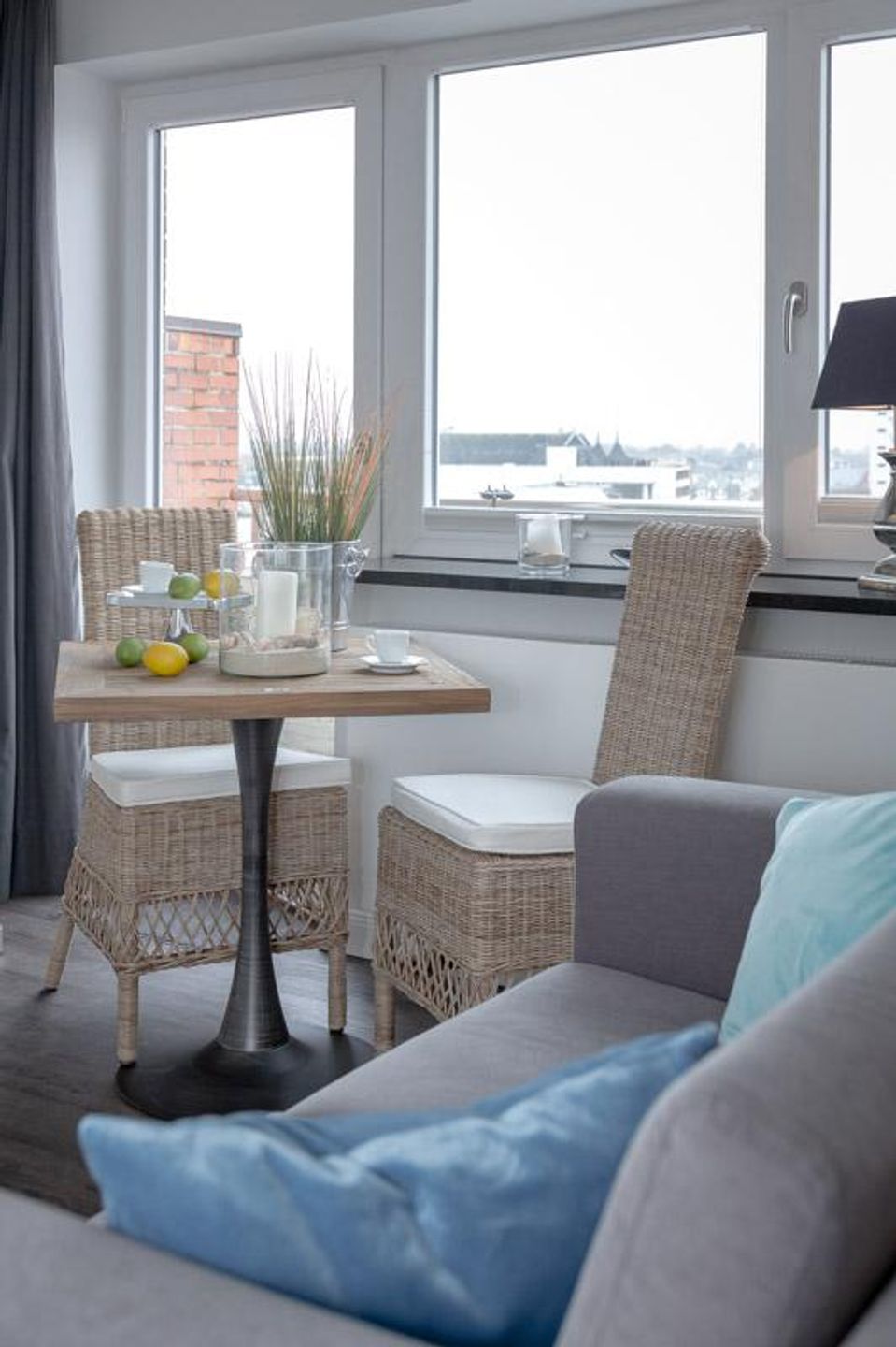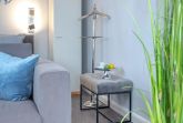 Top modernes 1-Zimmerappartement mit besten Aussichten! Das ca. 30m² große Appartement befindet sich in der obersten Etage des Hauses Andreas-Dirks-Str. 1, direkt am Westerländer Hauptstrand und der Promenade. Diese Wohnung ist mit modernem Designboden in Holzoptik ausgelegt und verfügt über ein top modernes Duschbad (bodentiefe Dusche) mit Fußbodenheizung. Moderne Einbauküche von Nehl (Nespresso Kapsel Maschine u. normale Filtermaschine vorhanden), sowie ein hell und modern eingerichteter Wohnraum mit einem herrlich großzügigen Balkon zur sonnigen Ostseite. Hier kann man in den schönen Sommermonaten bereits früh morgens seinen ersten Kaffee ungestört (keine Nachbarn!) in der Frühsonne genießen. Im kombinierten Wohn- / Schlafbereich (mit kleiner Essecke) gibt es ausreichend Stauraum für Ihre Kleidung. Das Bett in 1,60 x 2,00m. Ein TV (Kabel TV im Haus), BOSE Set und W-LAN bieten viele Entertainmentmöglichkeiten. Die Wohnung befindet sich in der ruhigsten Lage des Haus (am Ende des Hausflures). Hier ein Hinweis: Das Haus verfügt über einen Fahrstuhl bis in die 4. Etage. Es sind daher ca. 2 x 6 Stufen zur 5. Etage zu laufen. Im Haus befindet sich eine Gemeinschafts- Waschküche mit Münzautomaten. Für Ihre Fahrräder gibt es den abgeschlossenen Bereich im Innenhof zum Abstellen. Ein tolles Luxus Appartement für 2 Personen.