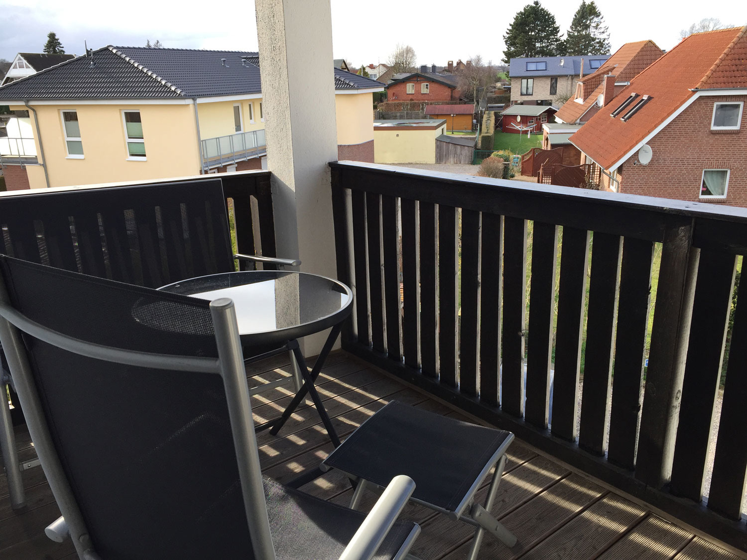Darüber hinaus lädt der möblierte, überdachte Balkon zum Verweilen ein.