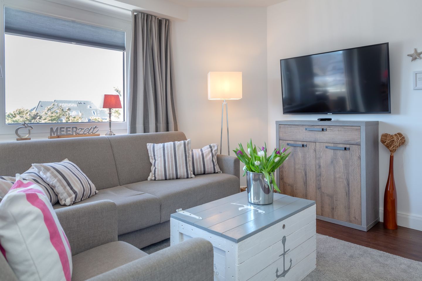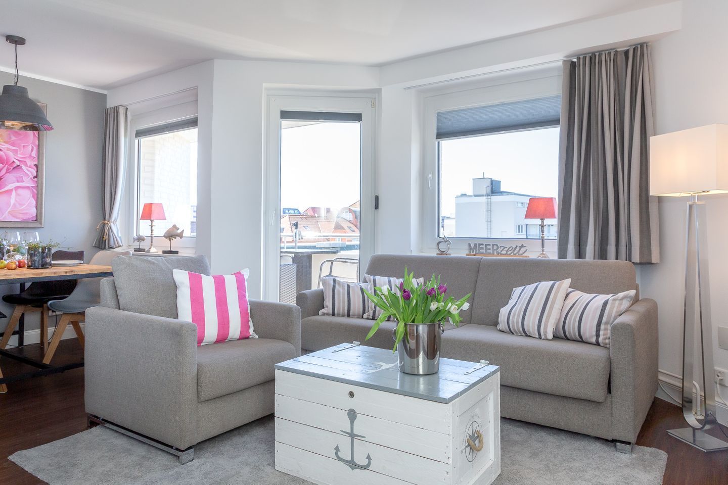 Hello my Beauty - Diese moderne Ferienwohnung besticht durch ihre Raumaufteilung, Lage und Ausstattung. Bei einer Wohnfläche von ca. 42m² für eine max. Belegung von 2 1/2 Personen, finden Sie hier alles um sich sofort wohl zu fühlen.Genießen Sie traumhafte Tage und einen erholsamen Aufenthalt in diesem top modernen Appartement. Zum Strand und der City sind es nur wenige Minuten zu Fuß. Die gesamte Wohnung ist mit schicken Designboden in Holzoptik ausgelegt. Heller Wohnraum mit gr. Schlafsofa 1,60 x 2,00m, Essecke und TV, W-LAN und Balkon nach Westen (mit Abendsonne). Küche mit Geschirrspüler. Schickes Bad mit bodentiefer Dusche. Kleines Schlafzimmer mit ,140 x 2,00m großen Doppelbett. Hinweis: Das Haus hat keinen Fahrstuhl, Parkmöglichkeiten finden Sie an der Straße. Dies ist eine Nichtraucherwohnung. Tierhaltung ist nicht gestattet.