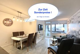 Ideal für 2 Personen - und durch das bequeme Schlafsofa im Wohnraum sind 4 Schlafplätze vorhanden. Diese gepflegte 1,5-Zimmer-Nichtraucher-Wohnung im EG eines ruhigen Apartmenthauses bietet nicht zuletzt mit der S-W-Loggia alles, was Sie für Ihren Wohlfühl-Urlaub am Meer brauchen: Vor der offenen Küche ist der große Essplatz - er bildet den Wohnmittelpunkt dieser ansprechend ausgestatteten Wohnung. Das bequeme Sofa im Wohn-/Schlafbereich lässt sich kinderleicht in ein gemütliches Bett (140x200) verwandeln (Topper vorhanden) und im Schlafzimmer befinden sich ein Boxspring-Bett für kuschelige Nächte und ein großer Schrank für Ihr Reisegepäck. Endlich mal wieder in Ruhe ein Buch lesen - dazu lädt der Relaxsessel geradezu ein. Zu Ihrer Unterhaltung empfangen Sie Radio über Smart-TV (49 Zoll) und Netflix und Amazon Prime mit Ihren privaten Zugangsdaten.