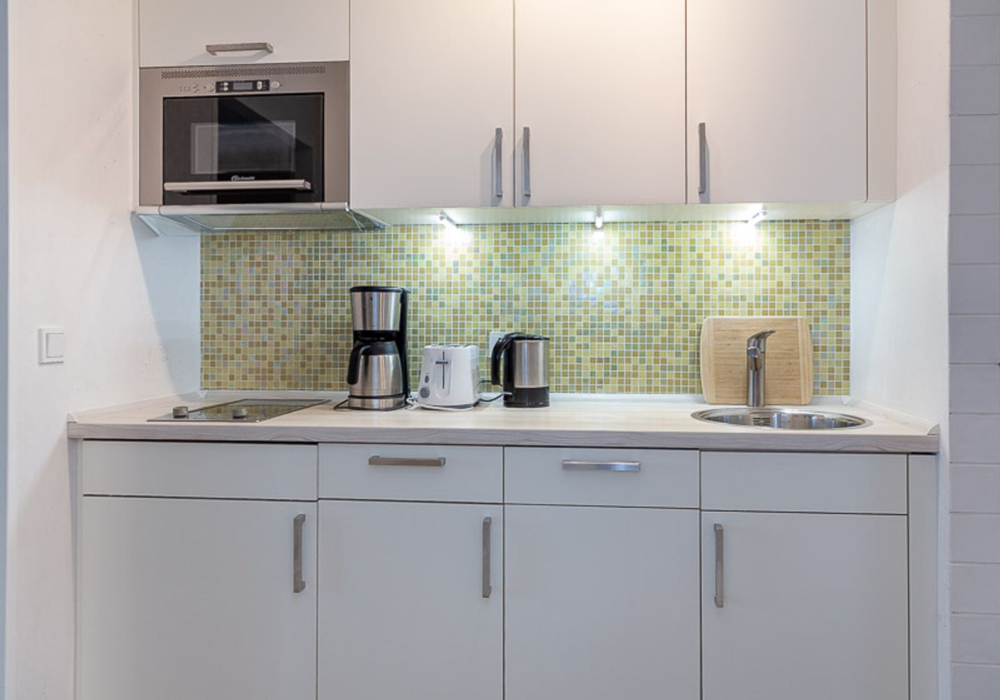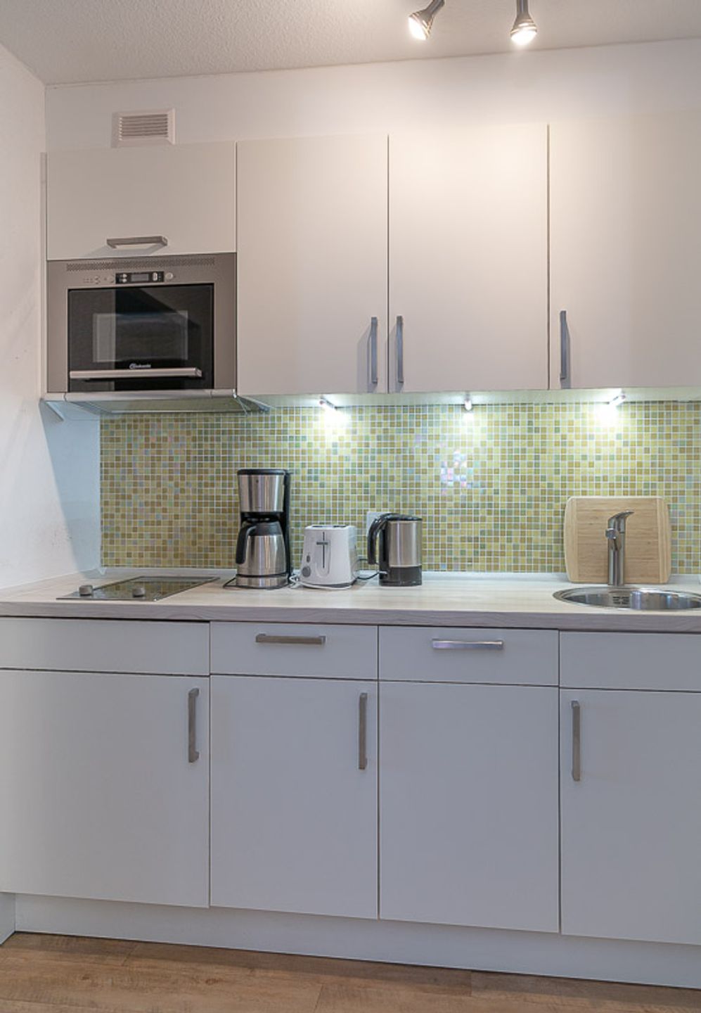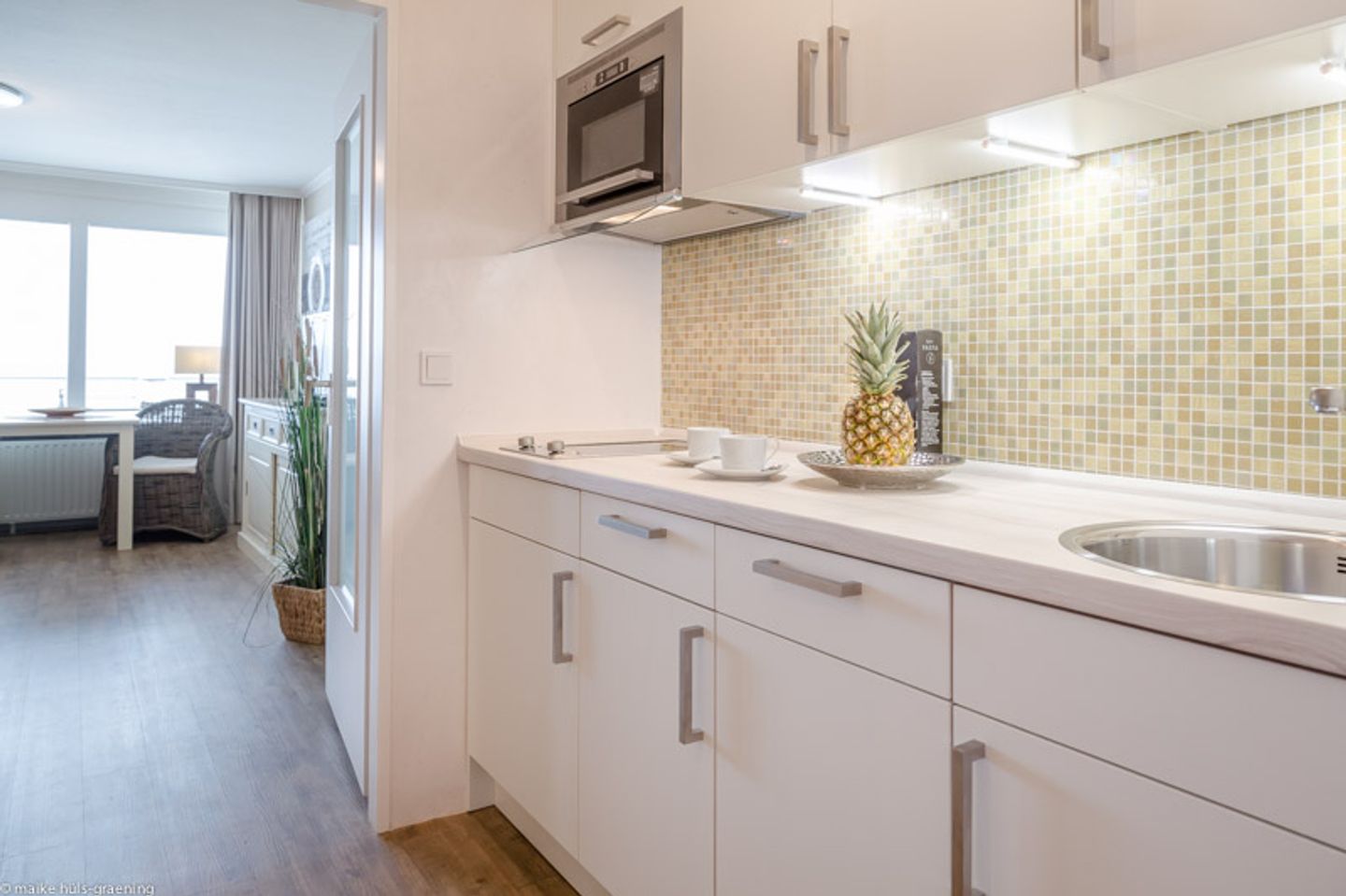 Mit einer großzügigen Fläche von 34 m² präsentiert sich die Ocean Lounge II als ideales Refugium für Paare oder Alleinreisende, die sich nach Entspannung und Erholung sehnen. Die helle und offene Wohnküche ist perfekt gestaltet, um gesellige Abendessen zu ermöglichen. Ausgestattet mit einem Kühlschrank, einem Backofen, einem Cerankochfeld und einer Spülmaschine, lässt sie keine Wünsche offen. Genießen Sie Ihre Mahlzeiten am Esstisch oder auf dem Balkon, während Sie den erfrischenden Duft des Meeres genießen.