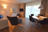 Schlafzimmer (2) mit Doppelbett (2 x 90 cm x 200 cm), Kleiderschrank und Rolladen. ein Duschbad mit flacher Dusche, Toilette, Waschbecken und Fenster. ein Wohn-/Esszimmer mit Zugang zur bestuhlten Westterrasse. Hier können Sie den Abend gemütlich ausklingen lassen.