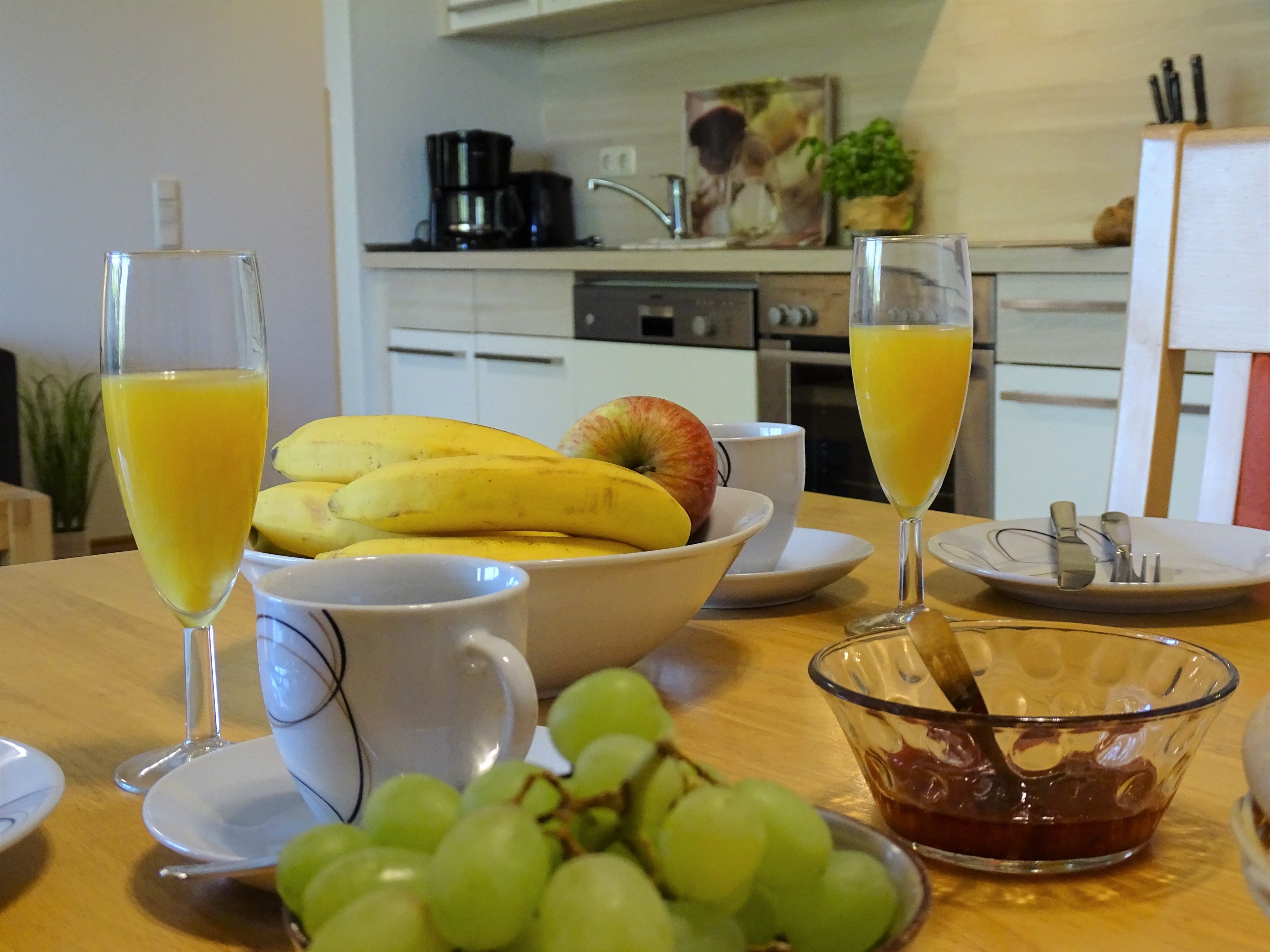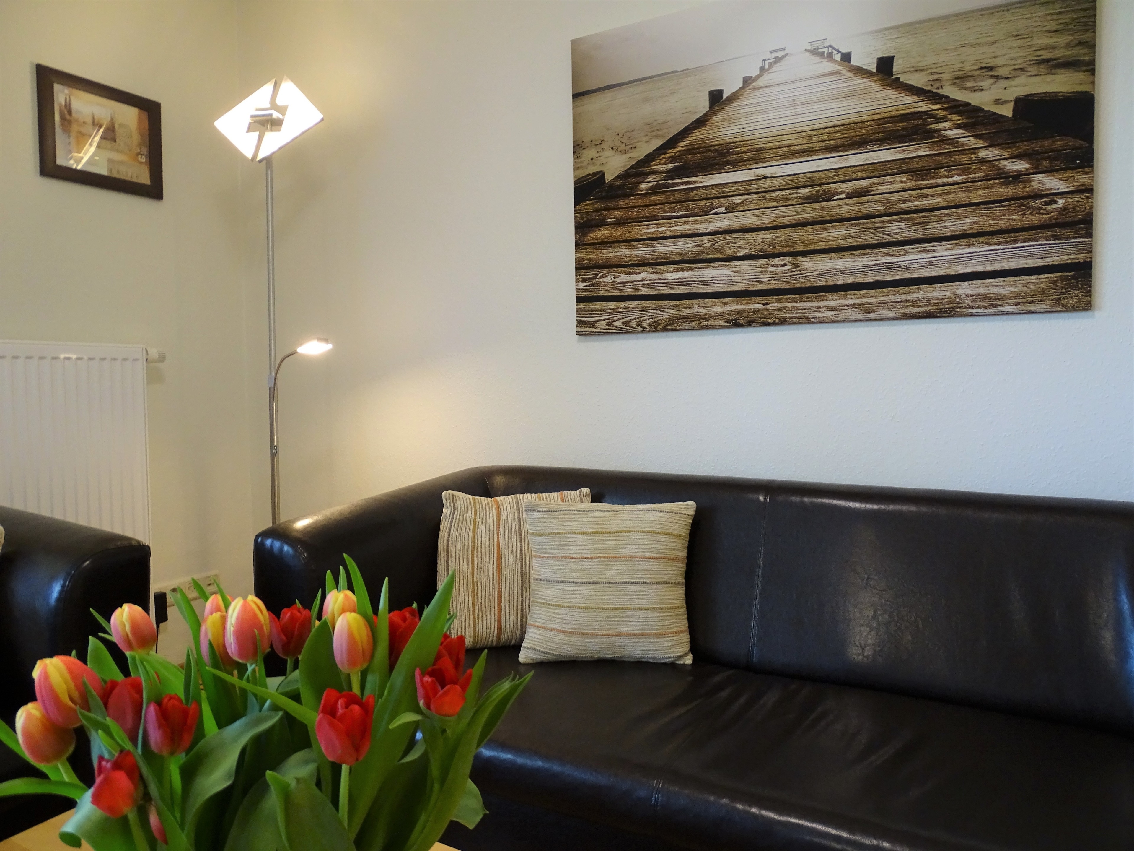 Unsere schöne und geräumige Ferienwohnung (ca.64m²) in ruhiger, strandnaher Lage ist ausgestattet für 4 Personen und verfügt über 2 separate Schlafzimmer. Sie bietet ein modernes Wohnzimmer mit Couch- und Essecke, SAT-Flachbild-TV und integrierte offene Küchenzeile. Die Einbauküche ist mit Geschirrspüler, Backofen, Ceranfeld, Mikrowelle, Kaffeemaschine, Toaster uvm. ausgestattet... Die Schlafzimmer (einmal mit Doppelbett und eines mit getrennt stehenden Einzelbetten) sind gemütlich eingerichtet. Das Duschbad ist hell und geräumig. Genießen Sie Ihre Urlaubsstunden auch auf der sonnigen Terrasse direkt am Objekt.