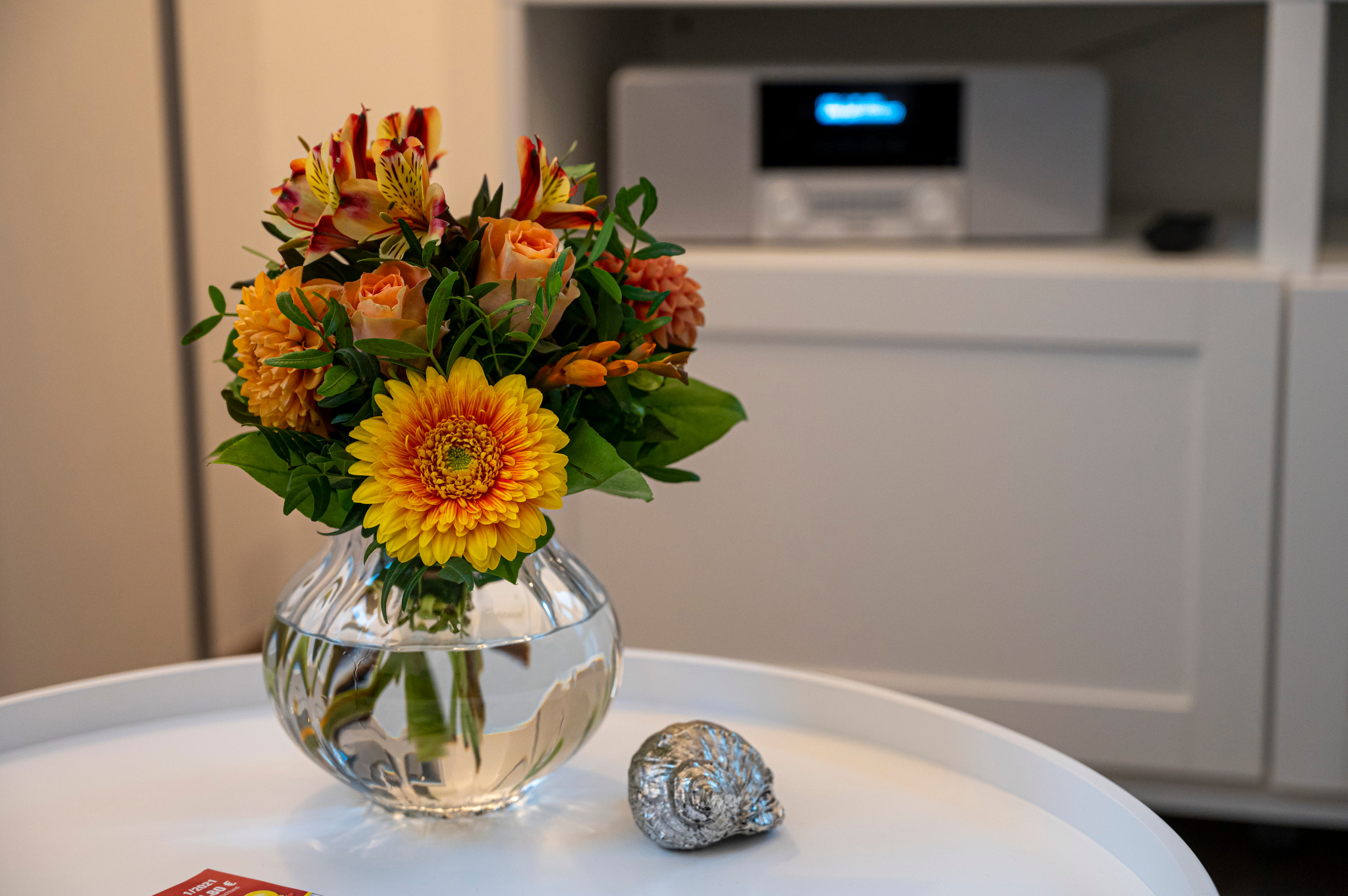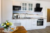 Für die Zubereitung eines leckeren Frühstücks steht Ihnen eine exklusive Einbauküche mit hochwertiger Ausstattung zur Verfügung. Je nach Lust und Laune können Sie sich dieses auch auf dem zugehörigen Balkon schmecken lassen. Hier können sich aber genauso gut von der Abendsonne verwöhnen lassen.