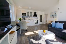 Zentral und dennoch ruhig liegt die Ferienwohnung Möövkieker im Herzen von Zingst. Die ca. 50qm große Wohnung ist für 3 Personen ausgelegt, hochwertig ausgestattet und liebevoll eingerichtet.