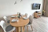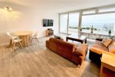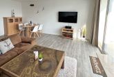 Der Wohn-/Schlafbereich verfügt über ein hochwertiges Schrankbett (140x200) und einer gemütlichen Couch mit Flachbildfernseher. Wer in dem Schrankbett schläft, kann gleich morgens beim Aufwachen den großartigen Meerblick genießen. Der angrenzende Essbereich ist für bis zu 4 Personen ausgerichtet und bietet Platz für gesellige Mahlzeiten.