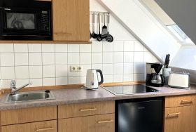 Nur 3 min vom Ostseestrand entfernt befindet sich das lichtdurchflutete Appartement 255, welches auf ca. 30 m² Platz für 1-2 Personen bietet. Die Unterkunft befindet sich im ersten OG, direkt über der Kurverwaltung Dierhagen Strand und ist barrierefreundlich und bequem über einen Fahrstuhl zu erreichen. Auf dem sonnigen SW-Balkon mit Blick in die Windflüchter des Küstenwaldes kann man bei Meeresrauschen den Frühstückskaffee genießen oder gemütlich den Abend ausklingen lassen. Verdunklungsrollos an den Dachschrägenfenstern und ein Doppelbett (1,80 x 2,00m) sorgen für entspannten Schlaf. Das Appartement verfügt über einen kostenlosen W-LAN Anschluss und Smart-TV.