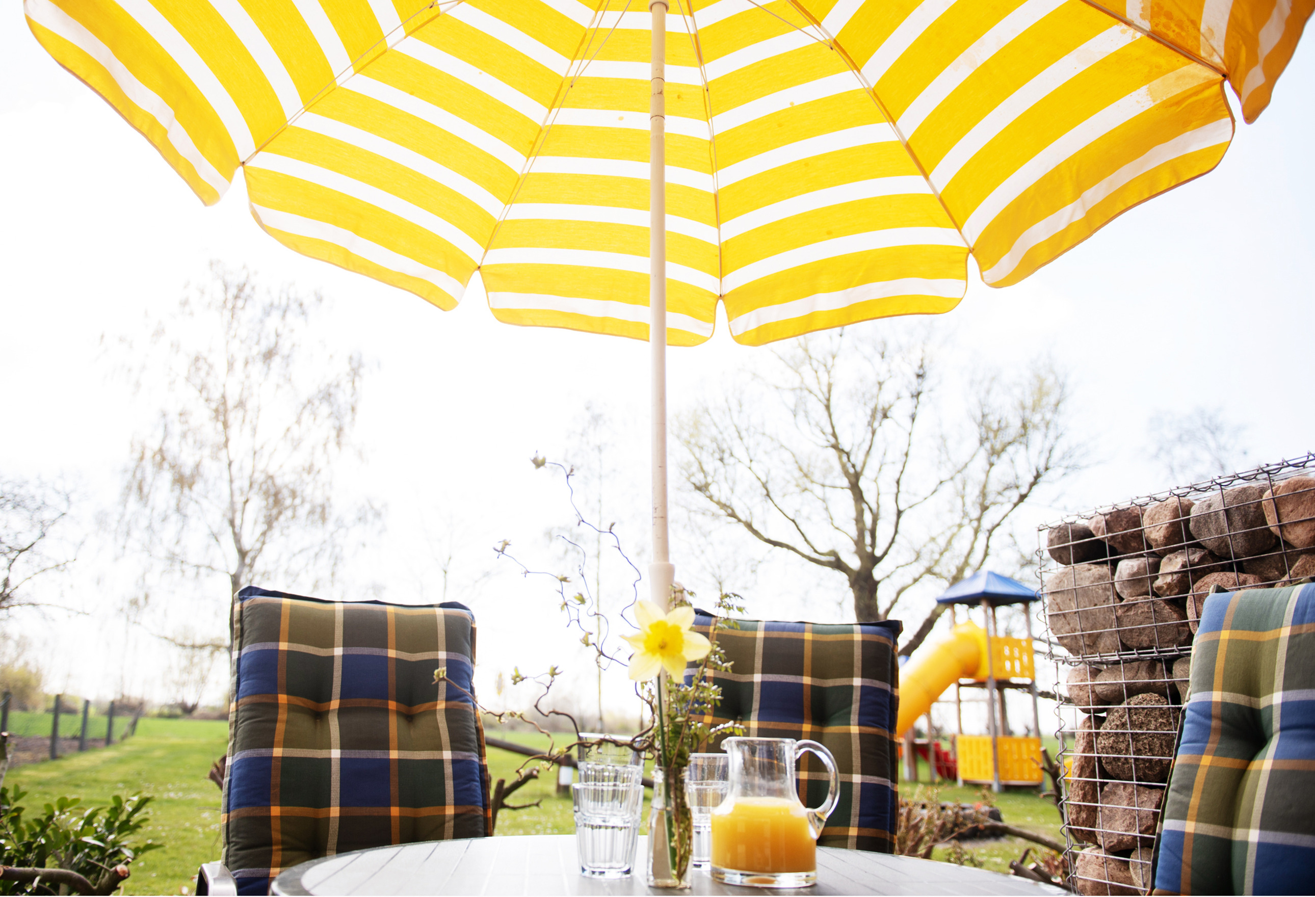Von Ihrer Terrasse haben Sie einen unverbauten Blick auf den Spielplatz, über die Felder bis zur Ostsee.
