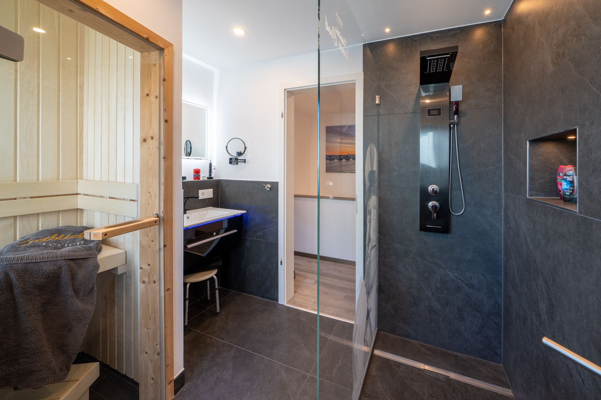 Die Ausstattung dieses exklusiven Domizils lässt keine Wünsche offen. Ein modernes Bad mit WC, Dusche und einer finnischen Sauna verspricht Entspannung pur in der ersten Etage.