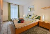 Das große Schlafzimmer ist mit Doppelbett, Nachttischen mit Leseleuchten und einem großen Kleiderschrank eingerichtet. Das Kinderschlafzimmer besteht aus zwei Einzelbetten und einem Kleiderschrank.