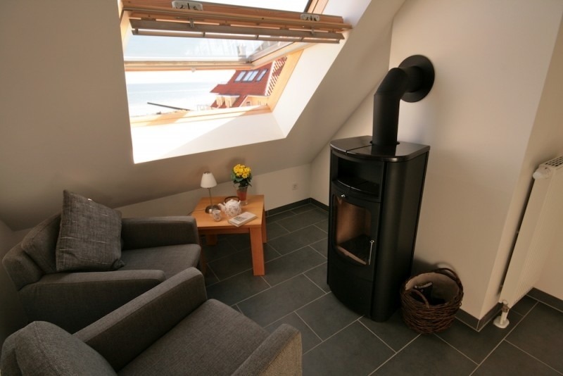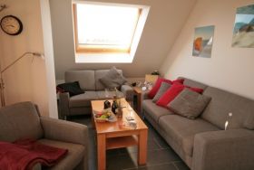 'Möwennest 14'. Erleben Sie erholsame Ferientage in unserer großen modernen Penthousewohnung mit jeglichem Komfort und wundervollem Meerblick.