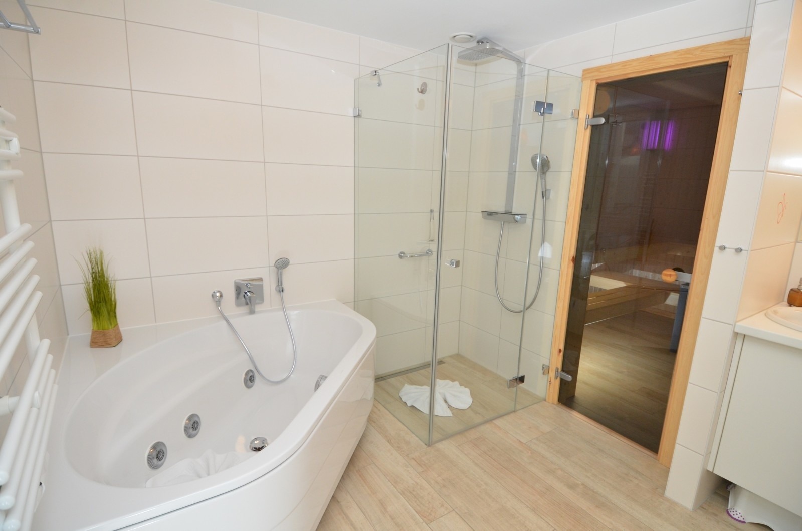 Ein Highlight - unser Wellnessbad mit zertifiziertem Whirlpool und Bio-Sauna!