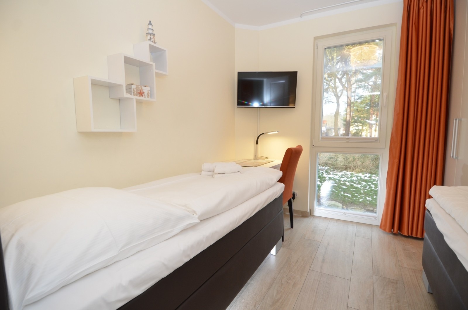 In unseren zwei Schlafzimmern genießen Sie nach einem erlebnisreichen Tag Ihre wohlverdiente Ruhe. Ein Schlafzimmer ist mit einem Doppelbett (durchgehende Matratze), dass andere mit zwei Einzelbetten ausgestattet. In beiden Schlafzimmern befindet sich ein weiteres TV-Gerät.