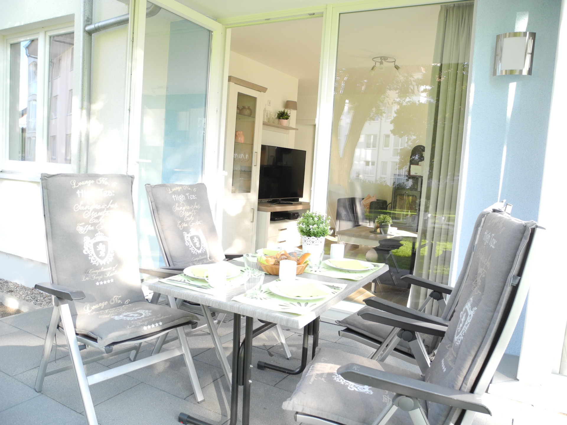Die Terrasse ist nach Süd-Süd-West ausgerichtet.