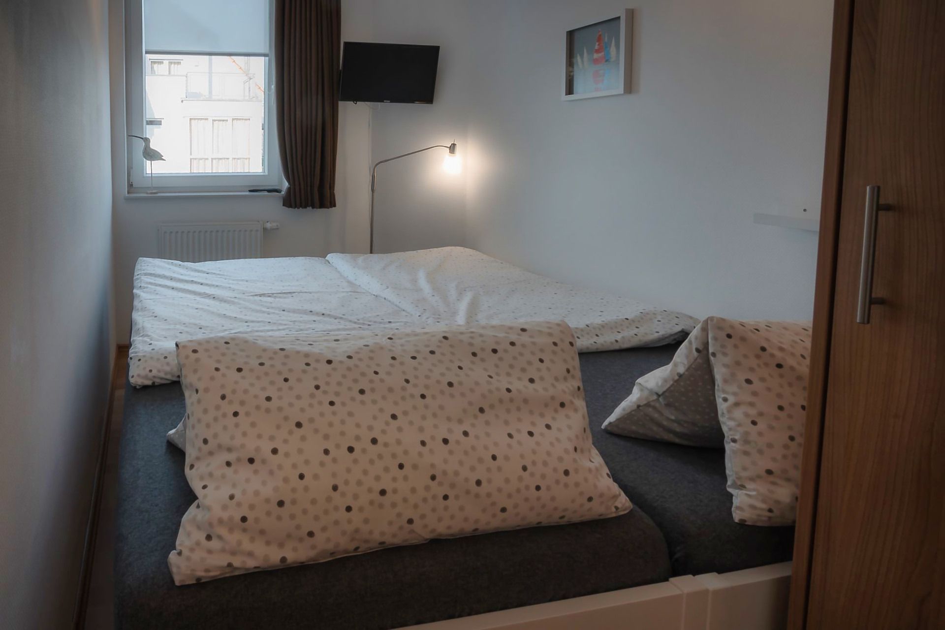Die Schlafzimmer sind mit hochwertigem Laminat und ausreichend Staumöglichkeiten für Ihre Urlaubsutensilien ausgestattet. In dem ersten Schlafzimmer finden Sie ein nagelneues Boxspringbett (180 cm x 200 cm) vor. Auch im zweiten Schlafzimmer finden Sie ein neues Bett (90 cm x 200 cm), das Sie mit zwei Handgriffen in ein vollwertiges Doppelbett (180 cm x 200 cm) auf einer Ebene verwandeln können. Sie werden wie auf Wolken schlafen. Beide Räume sind natürlich mit einem Flachbild-TV versehen.