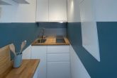Angrenzend an den Wohnbereich befindet sich die Küche, mit einer modernen Küchenzeile, die alles für den täglichen Bedarf bereithält wie z.B. eine Kaffee-Kapselmaschine und ein Induktionskochfeld.