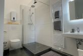 Als letztes Zimmer begrüßt Sie noch das geschmackvoll eingerichtete Badezimmer mit großer Regendusche und Waschbecken.