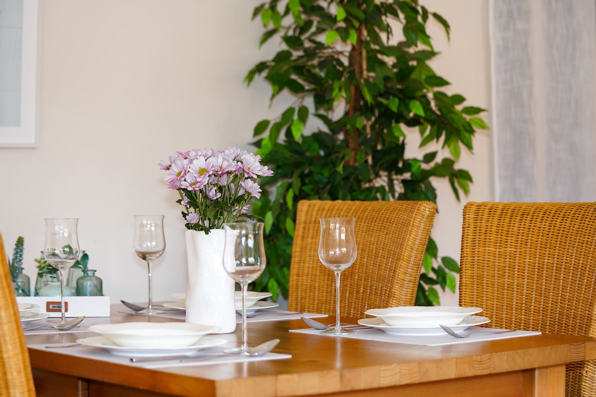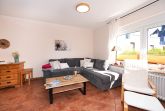 Das helle und freundliche Wohnzimmer verfügt über ein neues Ecksofa, einen Sessel und einen Esstisch. Ein großer Fernseher, eine Stereoanlage und natürlich kostenloses W-LAN stehen Ihnen hier zur Unterhaltung zur Verfügung.