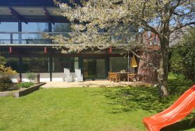 Von der gesamten Wohnung aus haben Sie einen offenen Blick in den Garten, auf den Bach und unser Wäldchen.