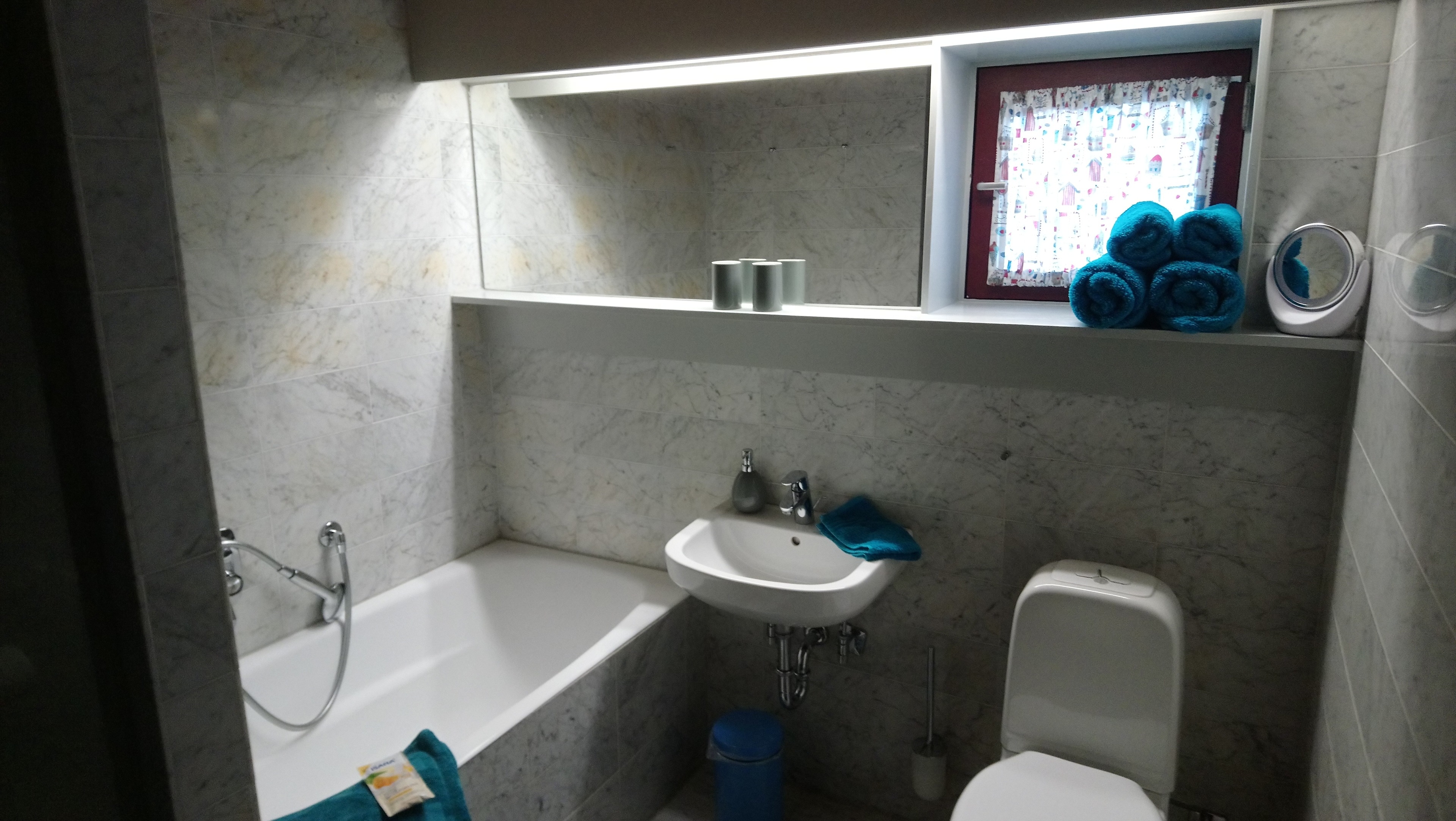 Die 90 Quadratmeter Ferienwohnung befindet sich im unteren Teil des Gebäudes (Hanglage), ebenerdig zum Gartengelände. Ein Wohnraum mit integrierter Küchenzeile, ein geräumiges Schlafzimmer, mit angrenzender großer Terrasse, ein Vollbad mit Dusche und ein weiterer Schlafraum laden zum Verweilen ein.