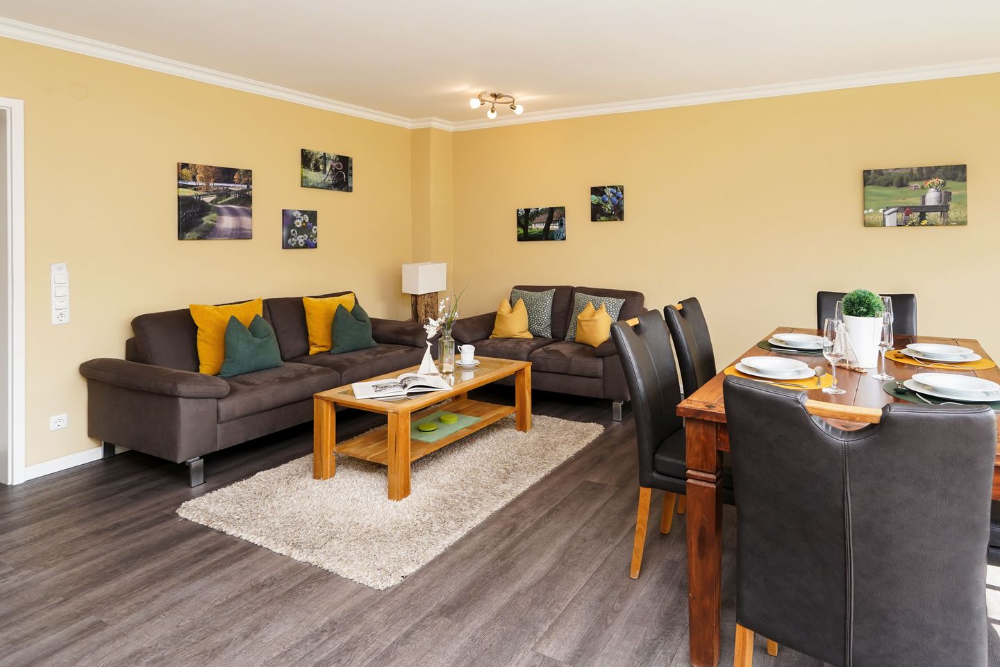 Diese familienfreundliche ca. 80 m² große Erdgeschosswohnung für bis zu 4 Personen bietet Ihnen ein gemütliches Wohn- und Esszimmer mit Kabel-TV sowie eine voll ausgestattete Küche samt Geschirrspüler, zwei Doppelschlafzimmer und ein Duschbad. Nutzen Sie gerne den eingezäunten Garten mit eigener Südterrasse und einem Strandkorb (in der Saison). Die Ferienwohnung verfügt über WLAN, einen zugehörigen PKW-Stellplatz, eine Waschmaschine sowie einen Wäschetrockner. Haustiere sind erlaubt.