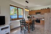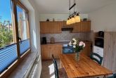 Die gut ausgestattete Küche besitzt unter anderem einen Kühlschrank, einen Herd zum Kochen und sogar eine Spülmaschine.