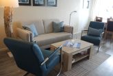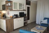 Geschmackvoll eingerichtete Ferienwohnung mit Balkon. Herrlicher Blick auf den Binnensee, Fehmarnsund und die Stadt. Küche komplett ausgestattet mit Mikrowelle. Kinderzimmer mit Etagenbett. Wohnzimmer modern ausgestattet mit Flachbild-TV. Elternschlafzimmer mit Doppelbett ( 1,80m x 2,00 m) durch einen Vorhang vom Wohnzimmer getrennt.