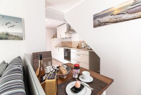 Komfort-Apartment in unmittelbar strandnaher Lage (Direkt am Deich, 100 m zum Strand) im Erdgeschoss für 2 Personen auf 40 m² Wohnfläche mit 1 Schlafzimmer mit Boxspringbett.